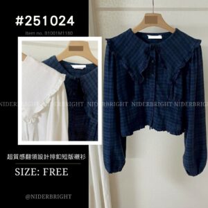 2510#24 兩色 大翻領 排釦 短版 氣質 格紋襯衫/白襯衫