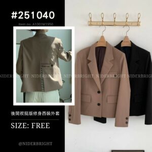2510#40 質感 修身 短版 後開衩 拼接字母設計 西裝外套
