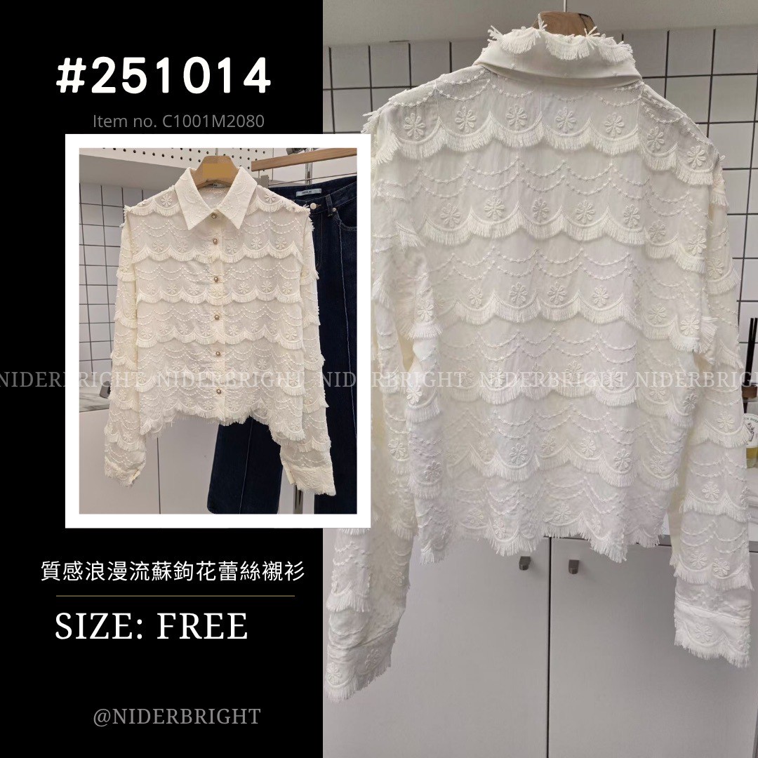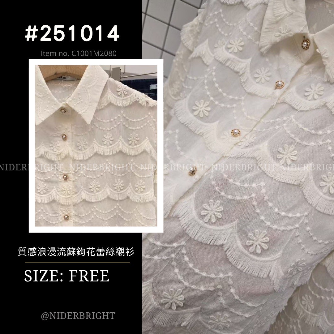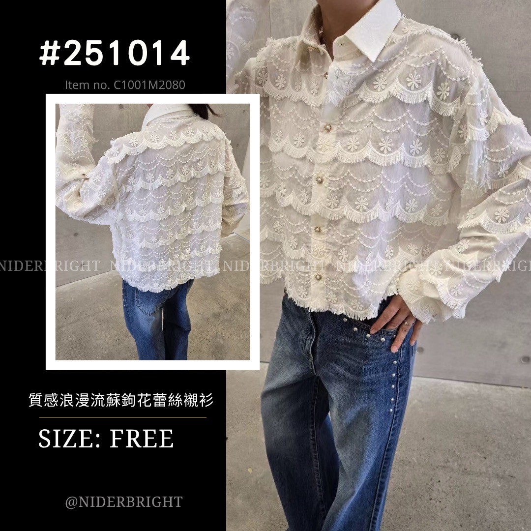 / 2510#14 質感 鉤花蕾絲 透膚襯衫 外搭 罩衫