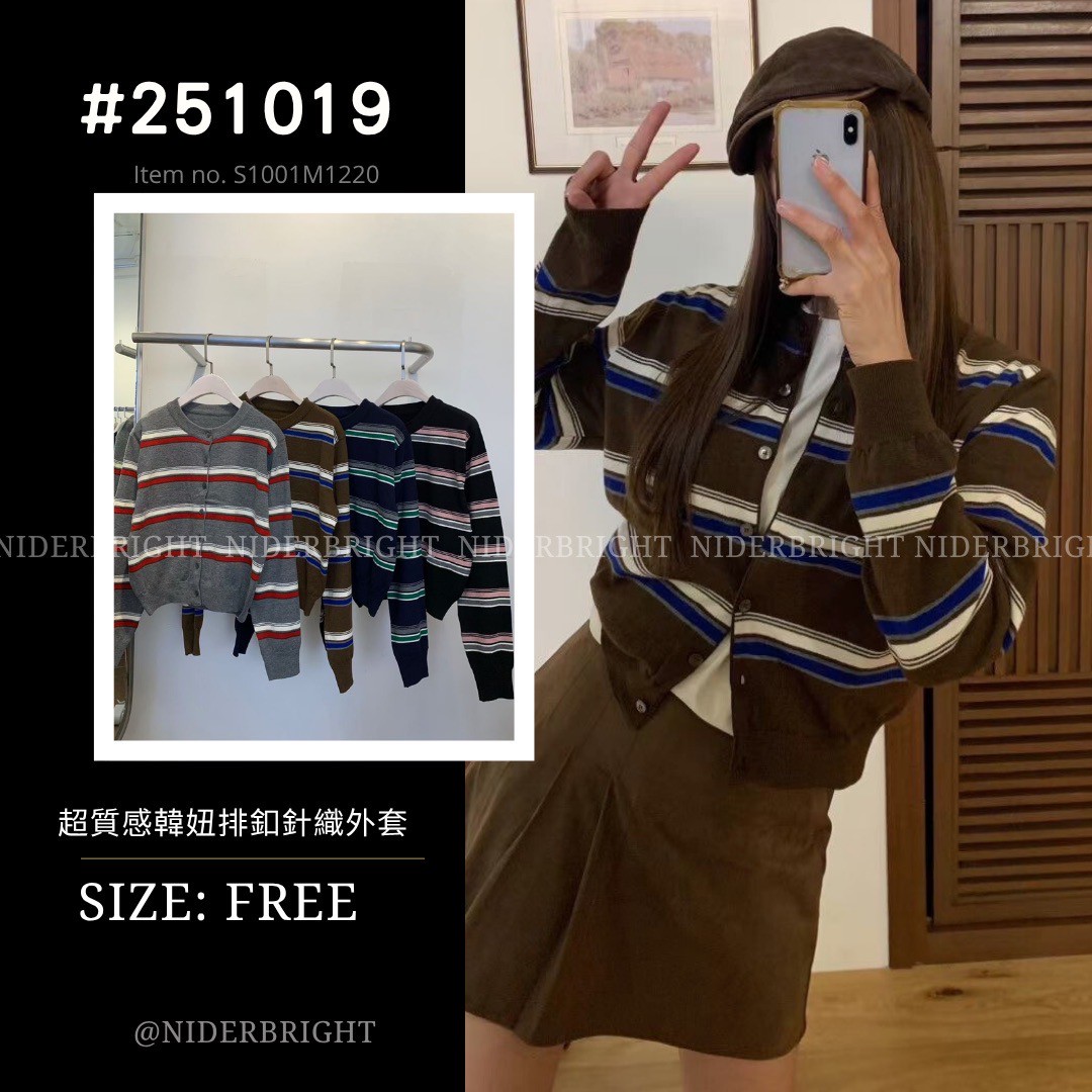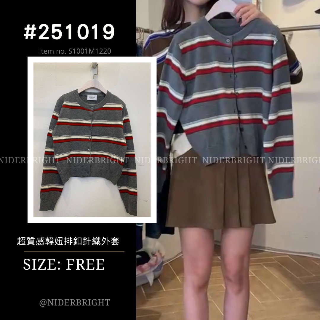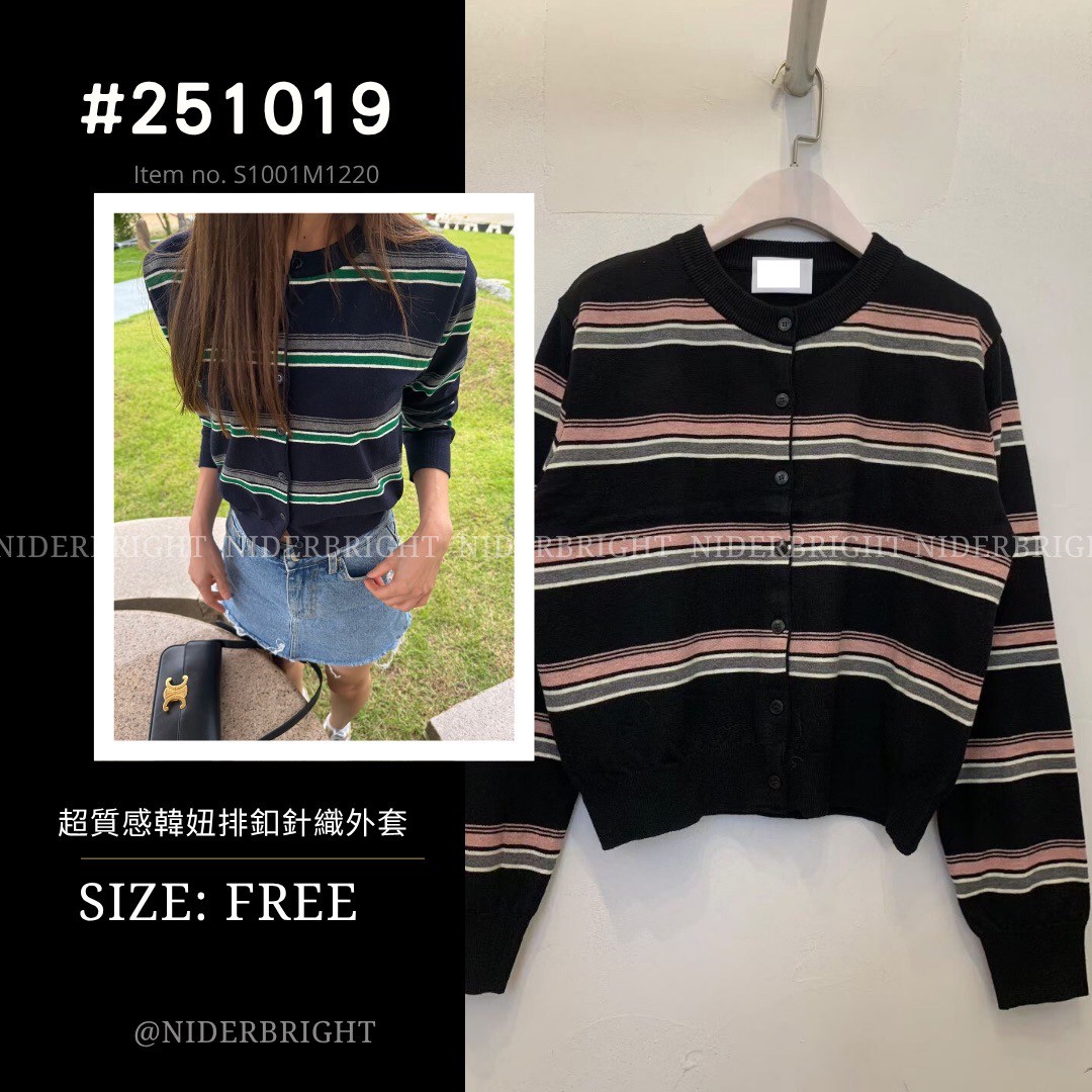 2510#19 條紋 排釦 薄針織 外套 quantity