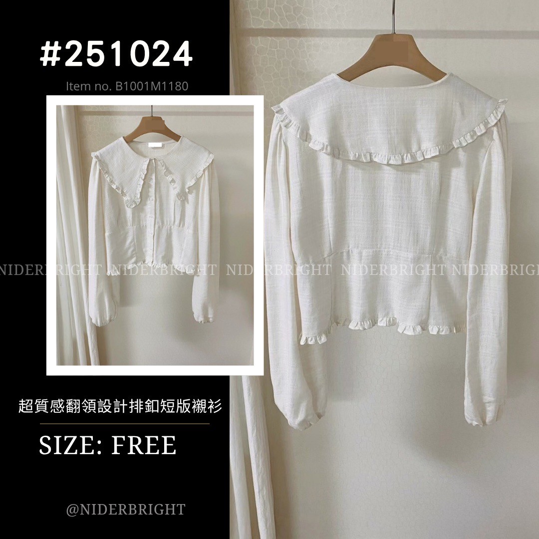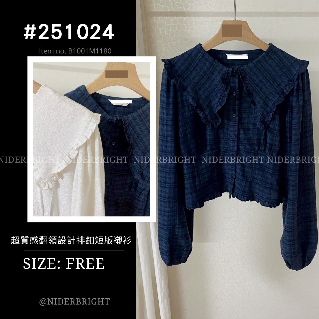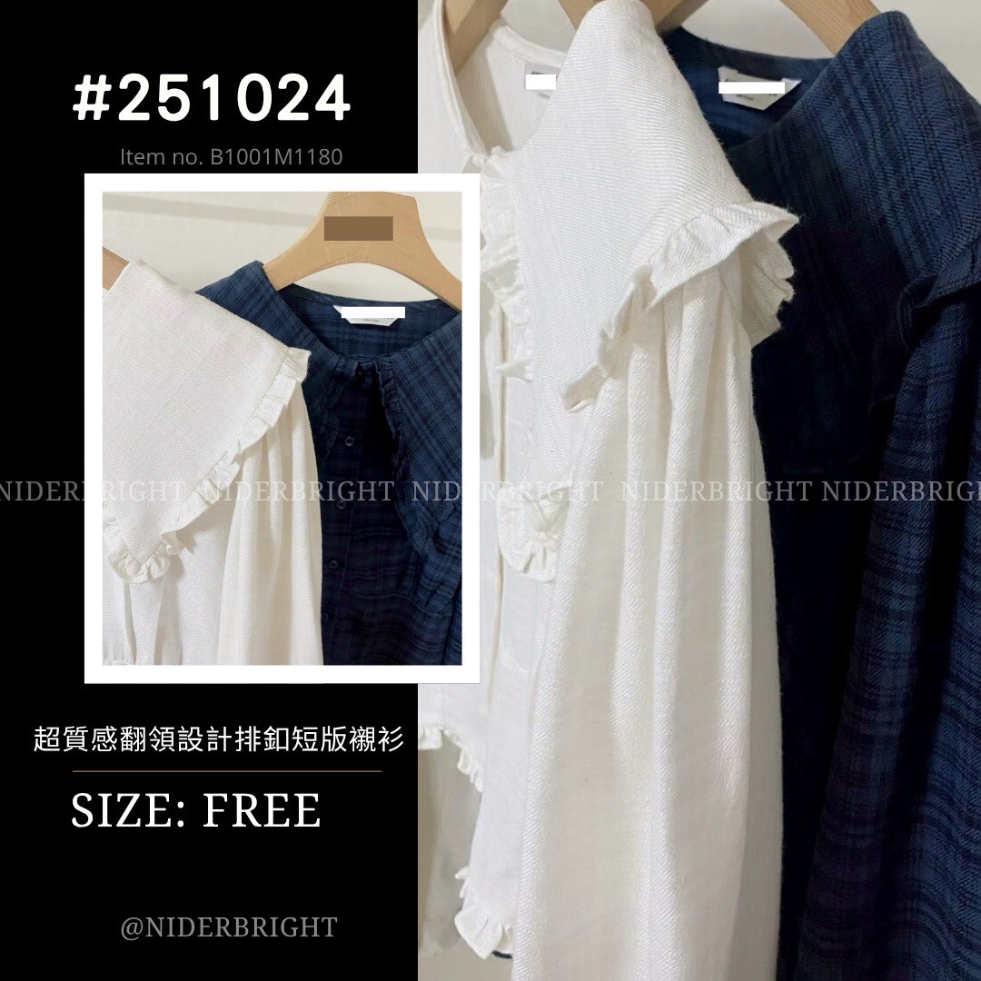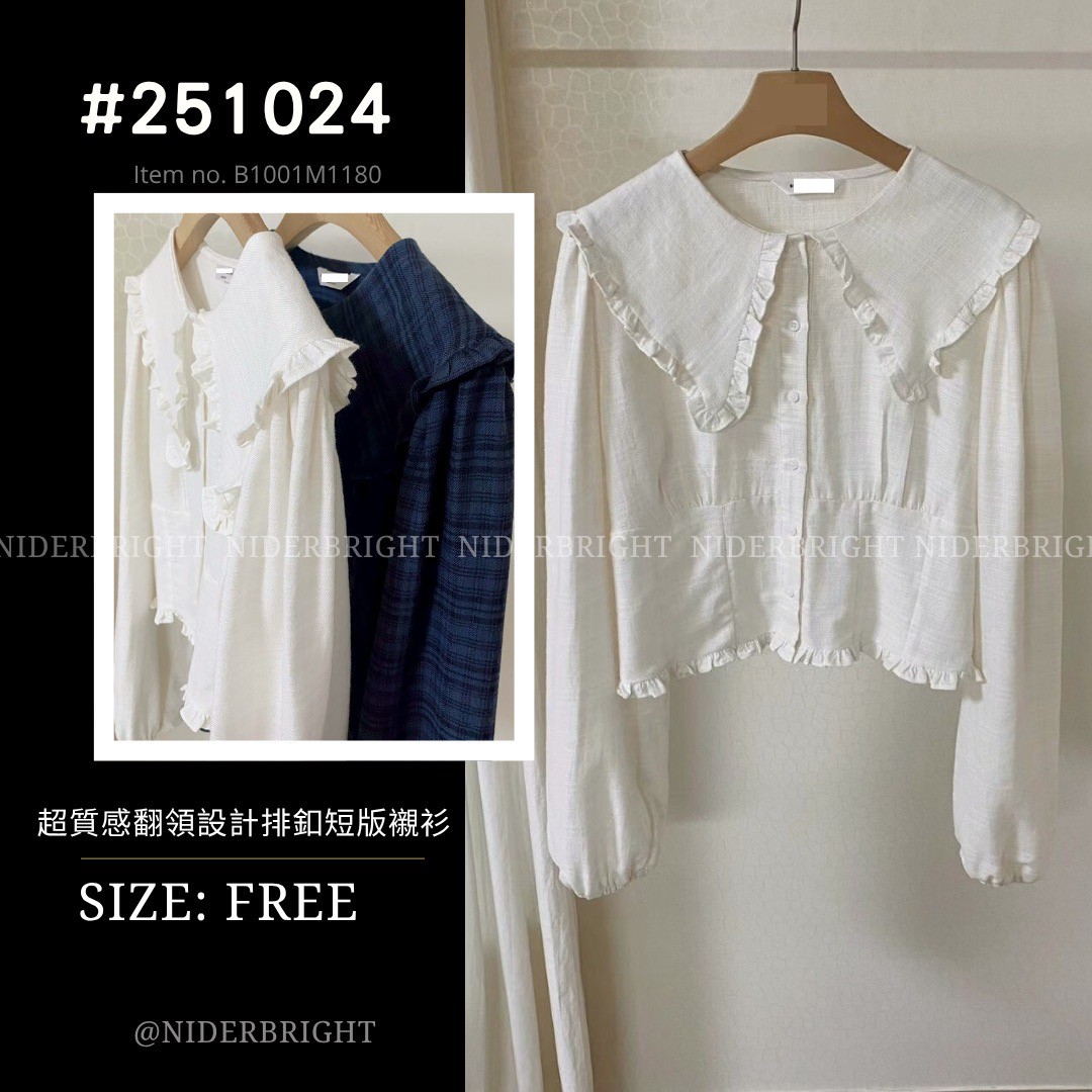 2510#24 兩色 大翻領 排釦 短版 氣質 格紋襯衫/白襯衫 quantity