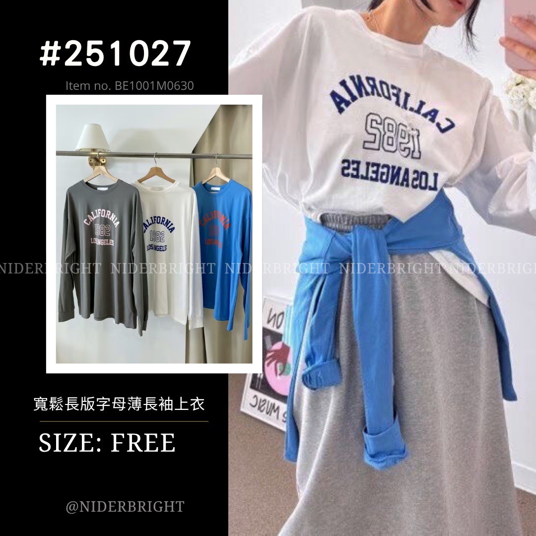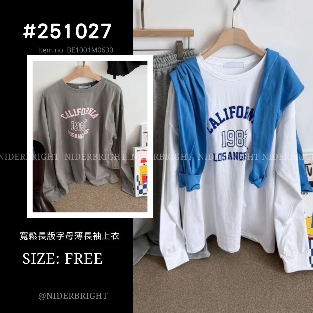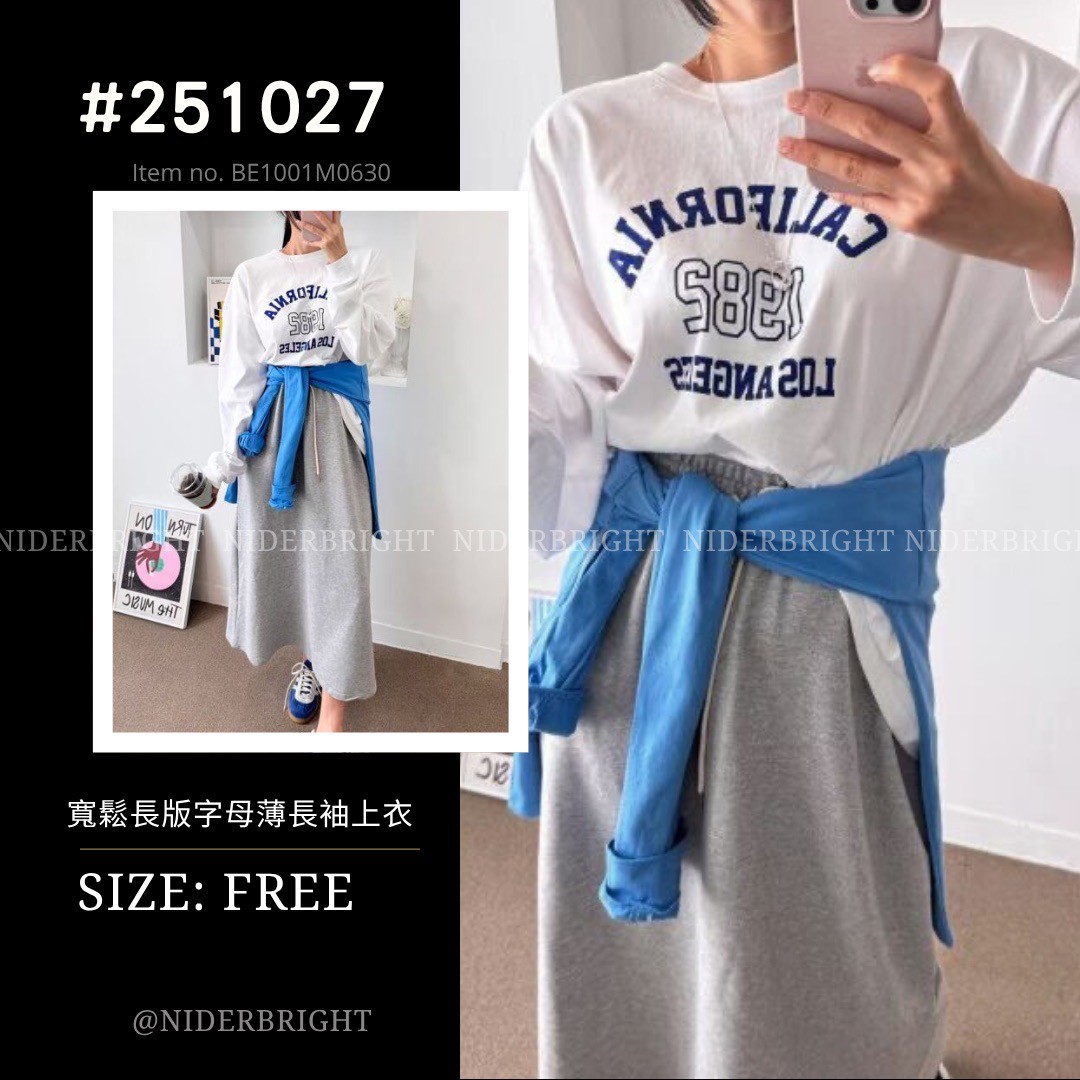 / 2510#27 圓領 寬鬆 長版 字母 休閒 薄長袖 棉質 上衣
