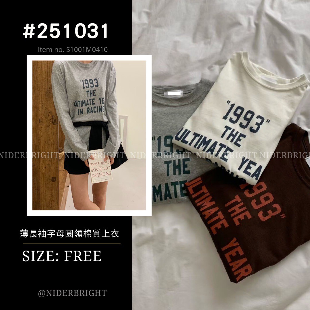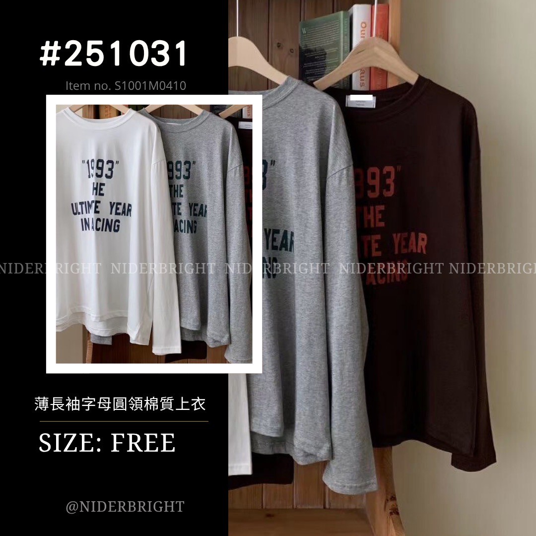 2510#31 圓領 百搭 休閒 字母 棉質 薄長袖 上衣