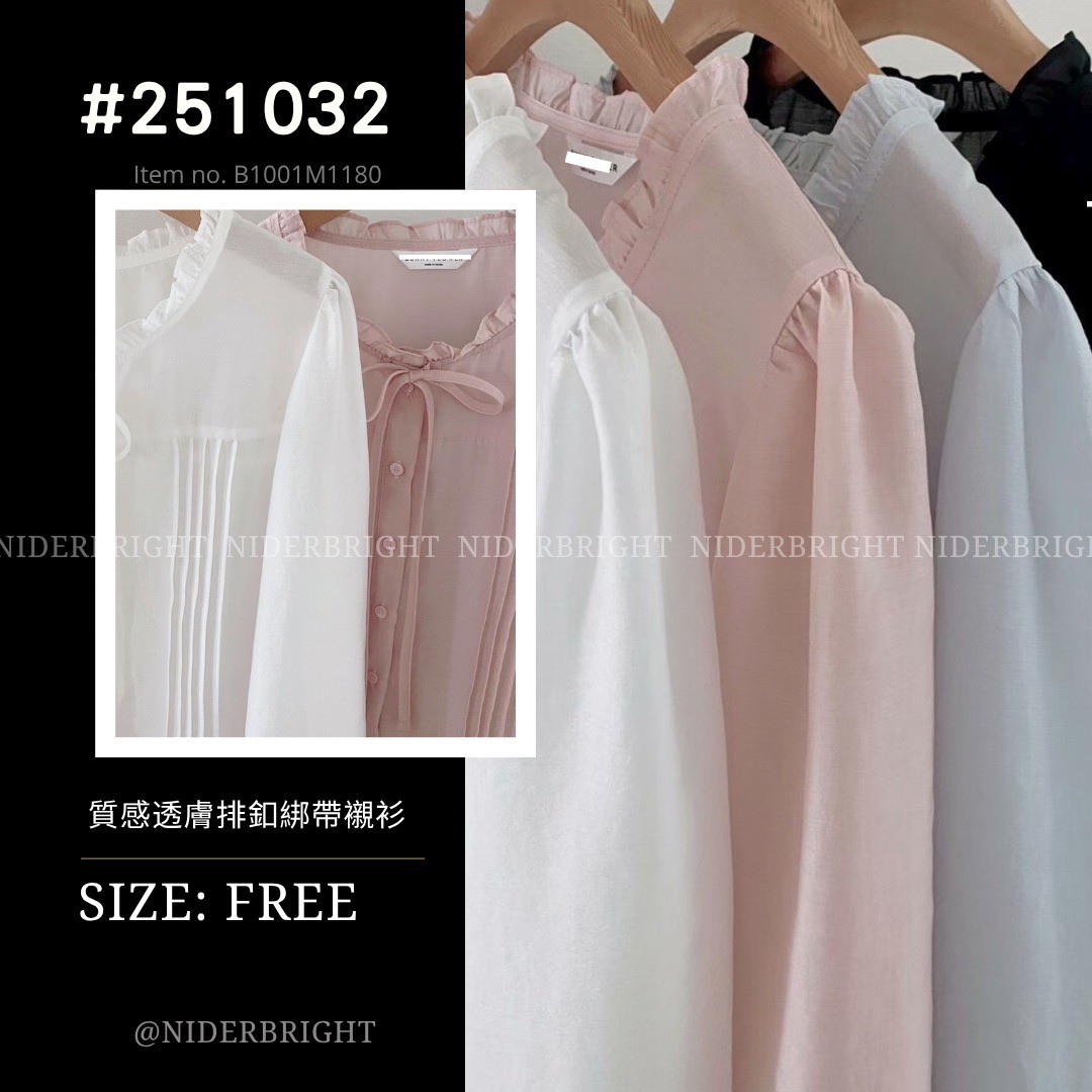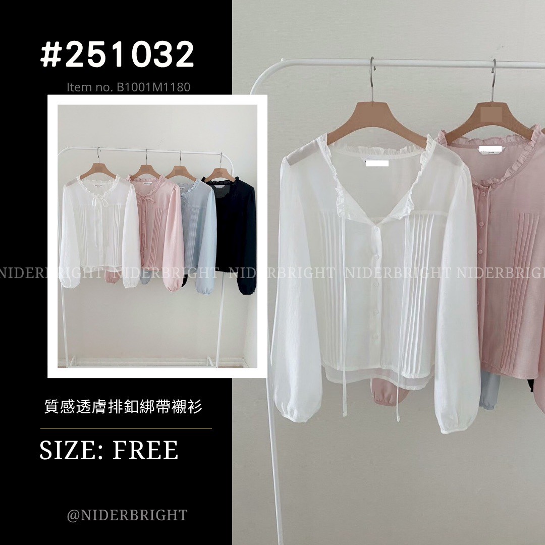 2510#32 超質感 透膚 排釦 綁帶 薄長袖 氣質襯衫 quantity