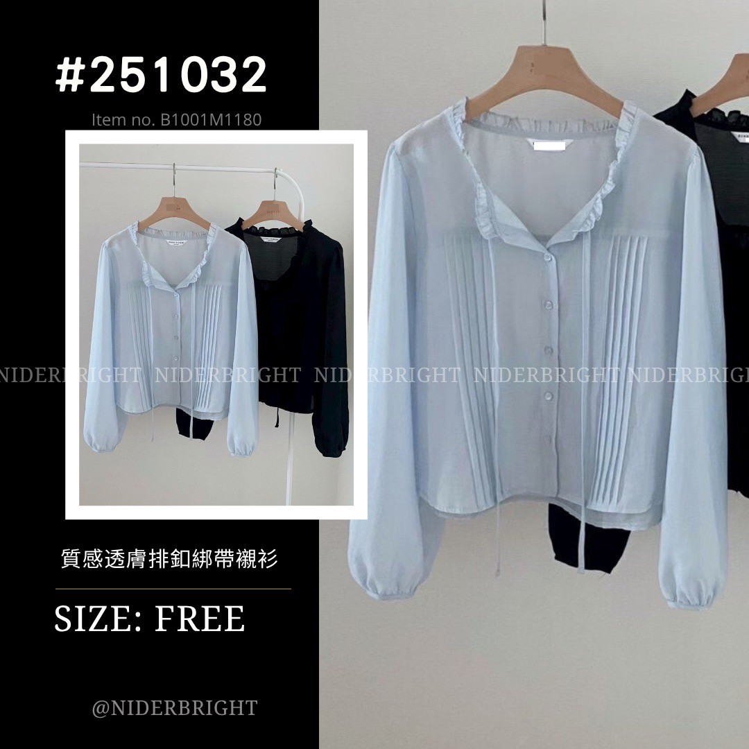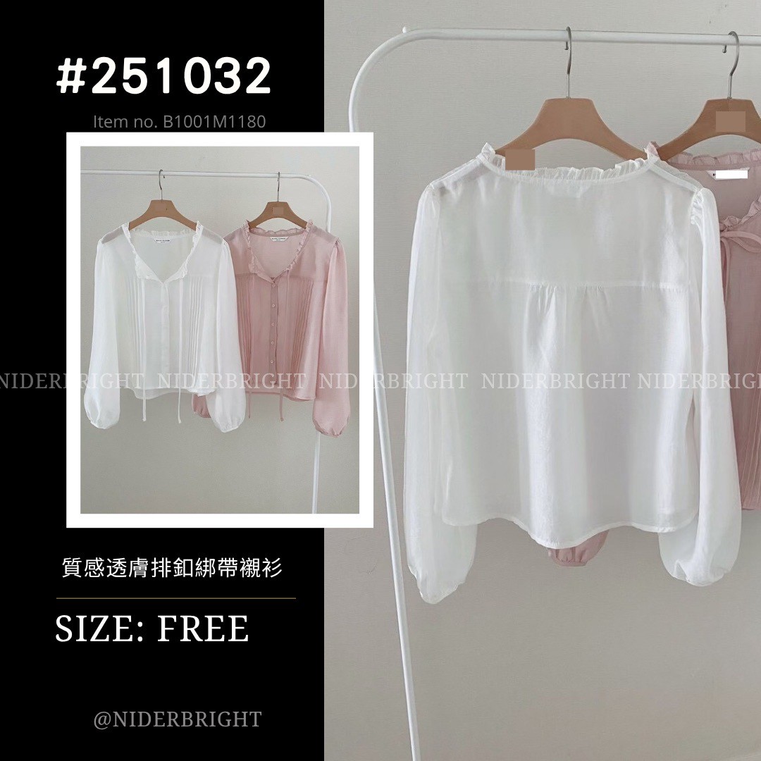 / 2510#32 超質感 透膚 排釦 綁帶 薄長袖 氣質襯衫