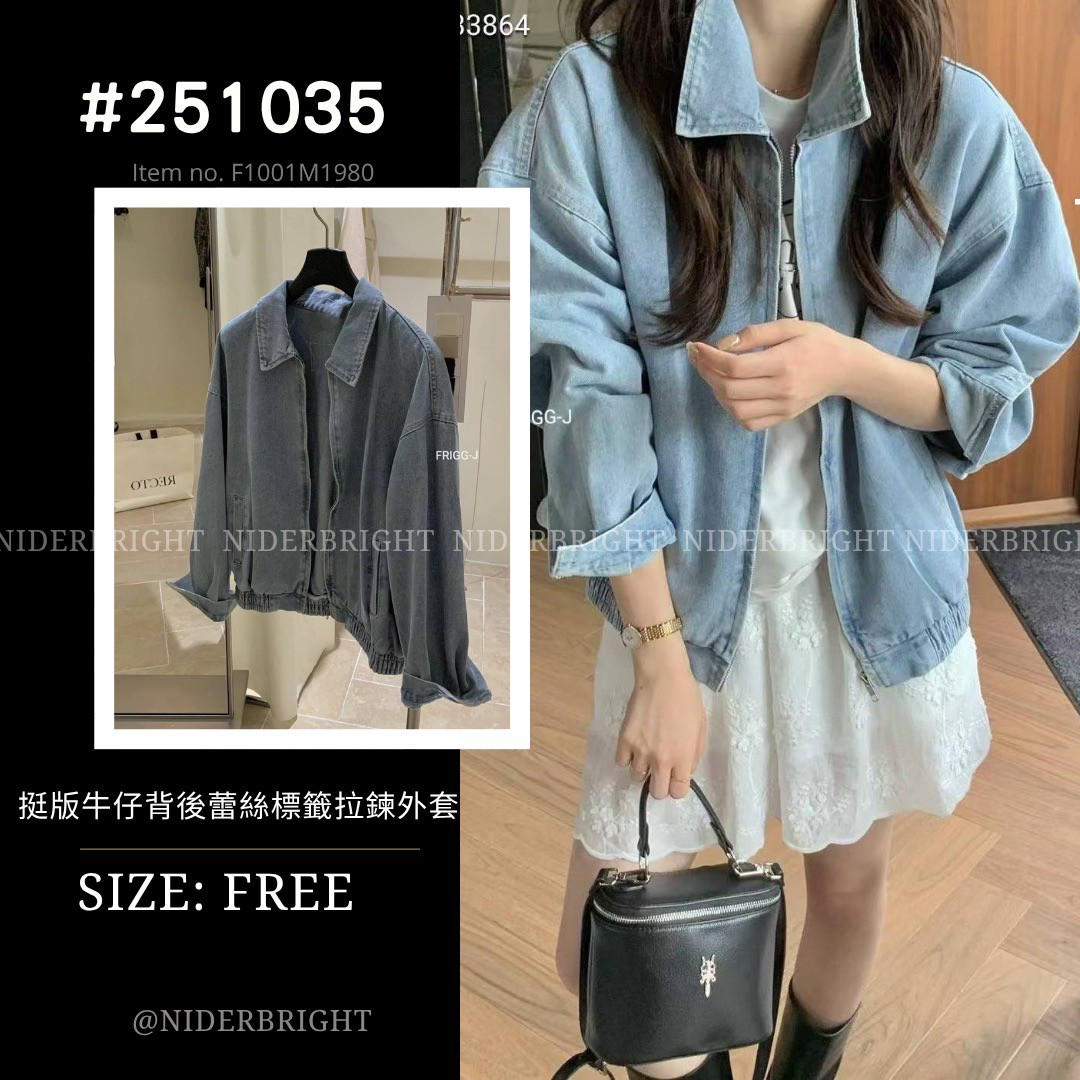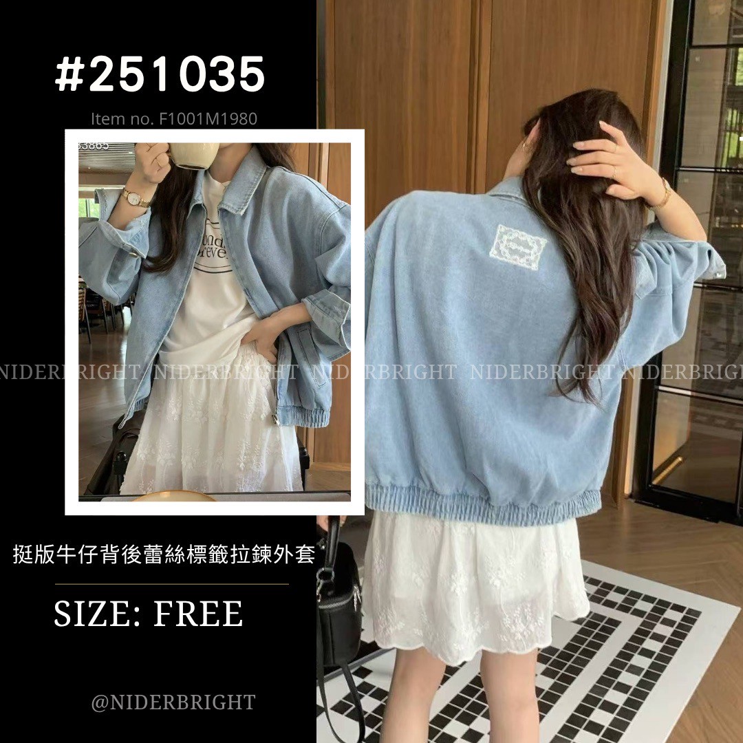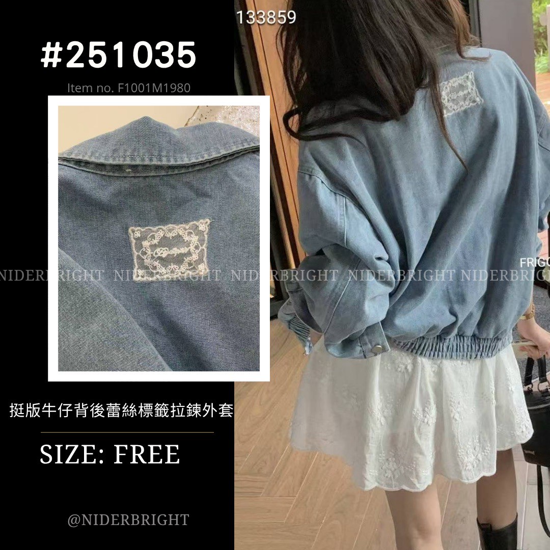2510#35 後蕾絲標籤 翻領拉鍊 牛仔外套 quantity