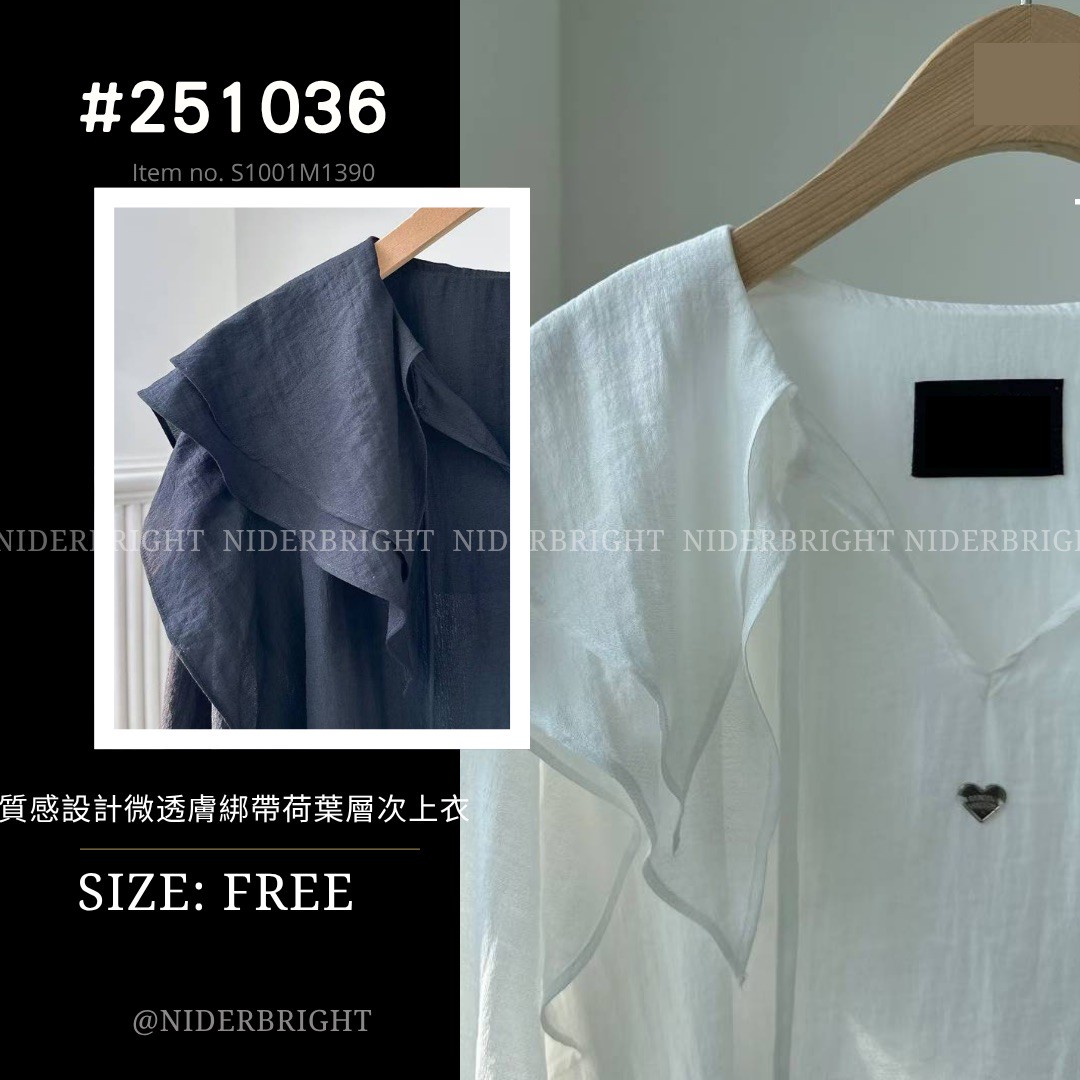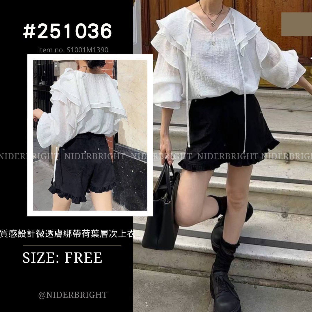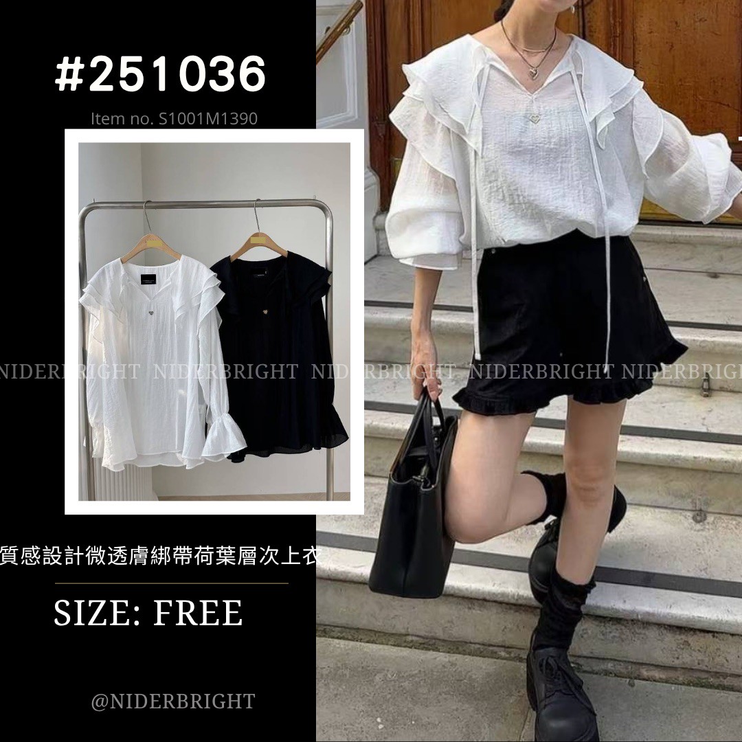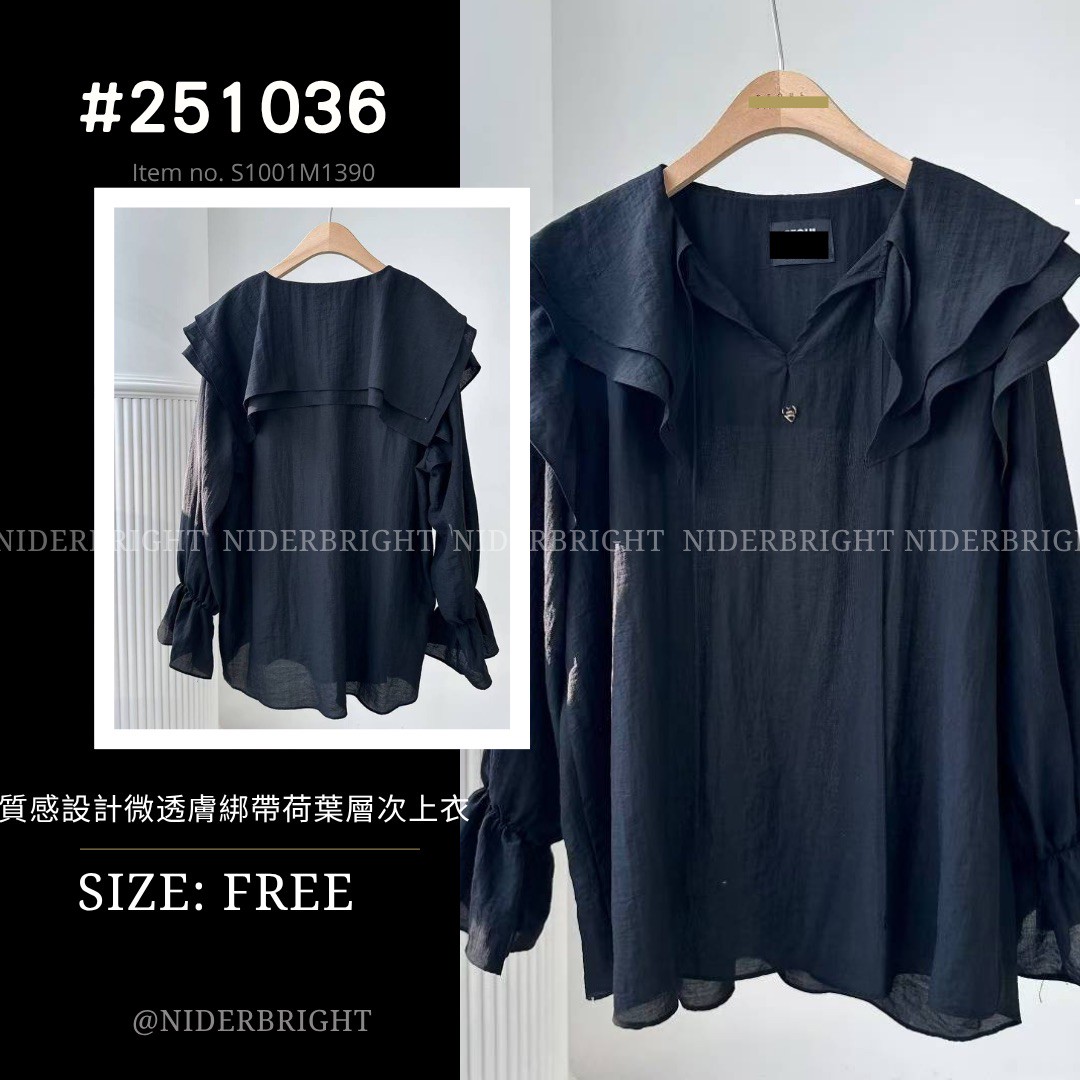 2510#36 浪漫感 綁帶 層次荷葉領 薄長袖 上衣 quantity