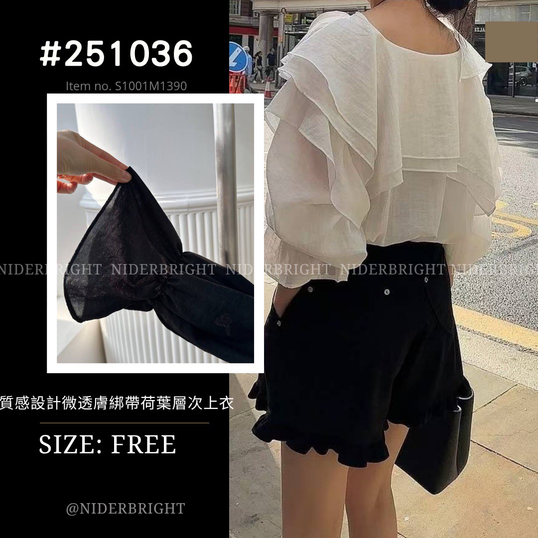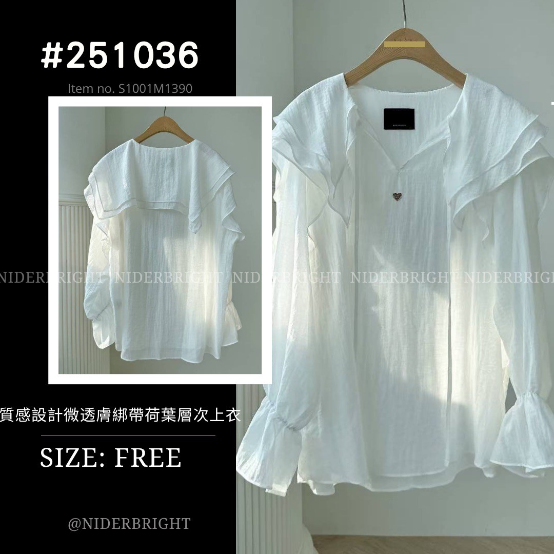 / 2510#36 浪漫感 綁帶 層次荷葉領 薄長袖 上衣