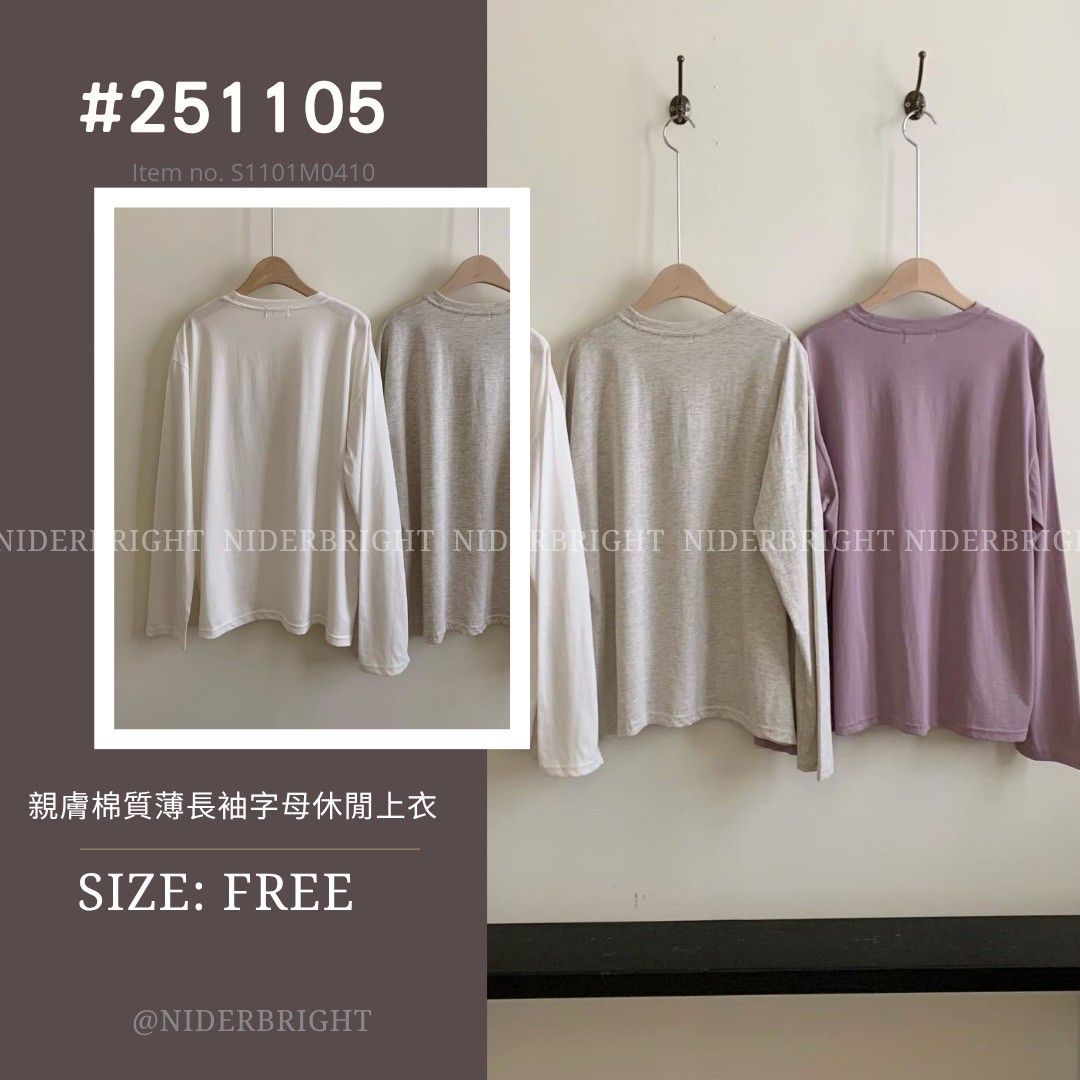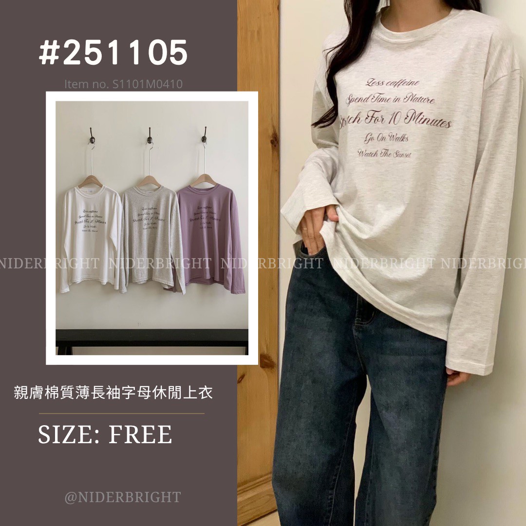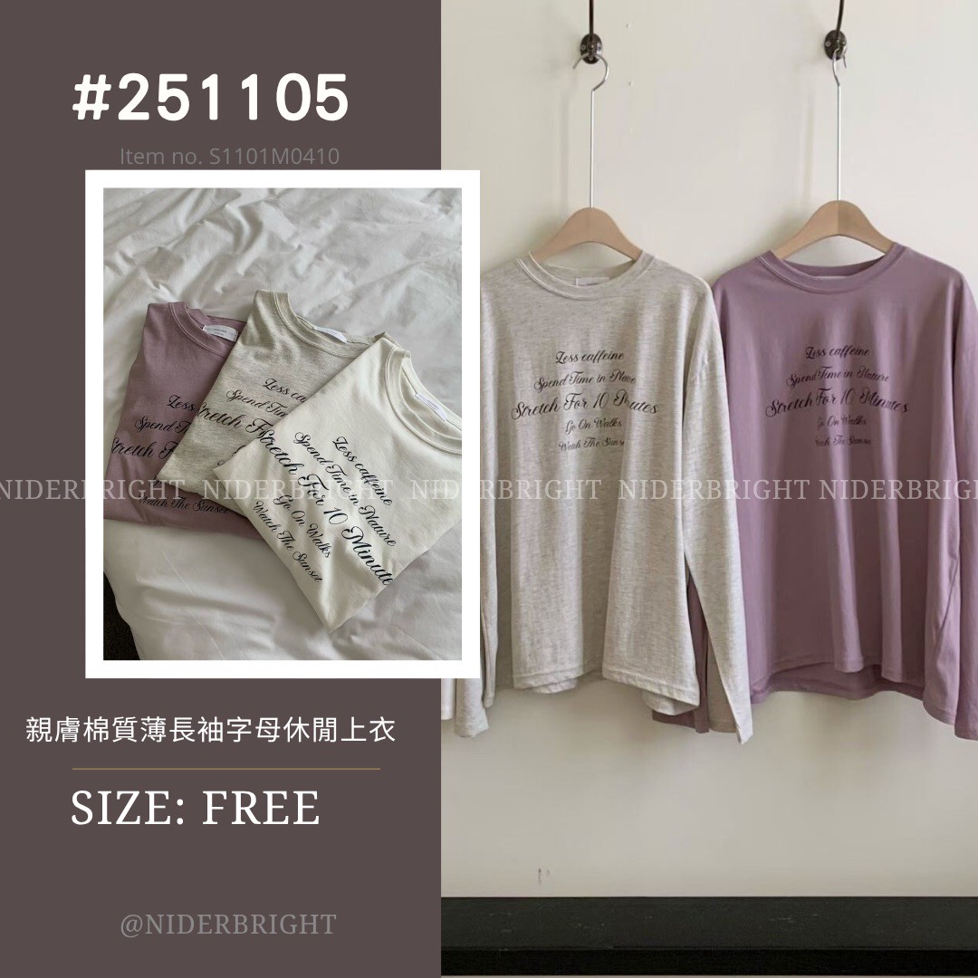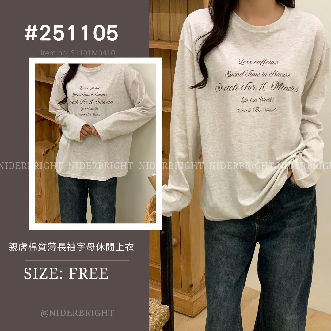 / 2511#05 親膚 棉質 字母 薄長袖 休閒 上衣