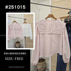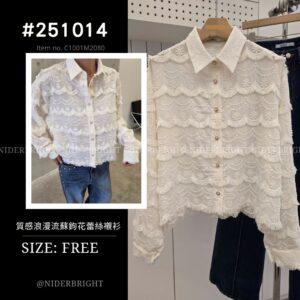 2510#15 大翻領 質感鉤花 排釦 氣質 長袖襯衫 上衣