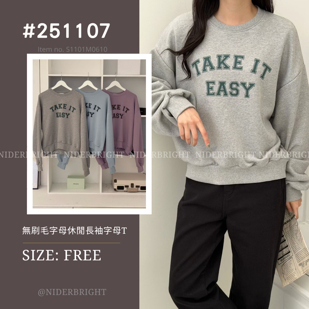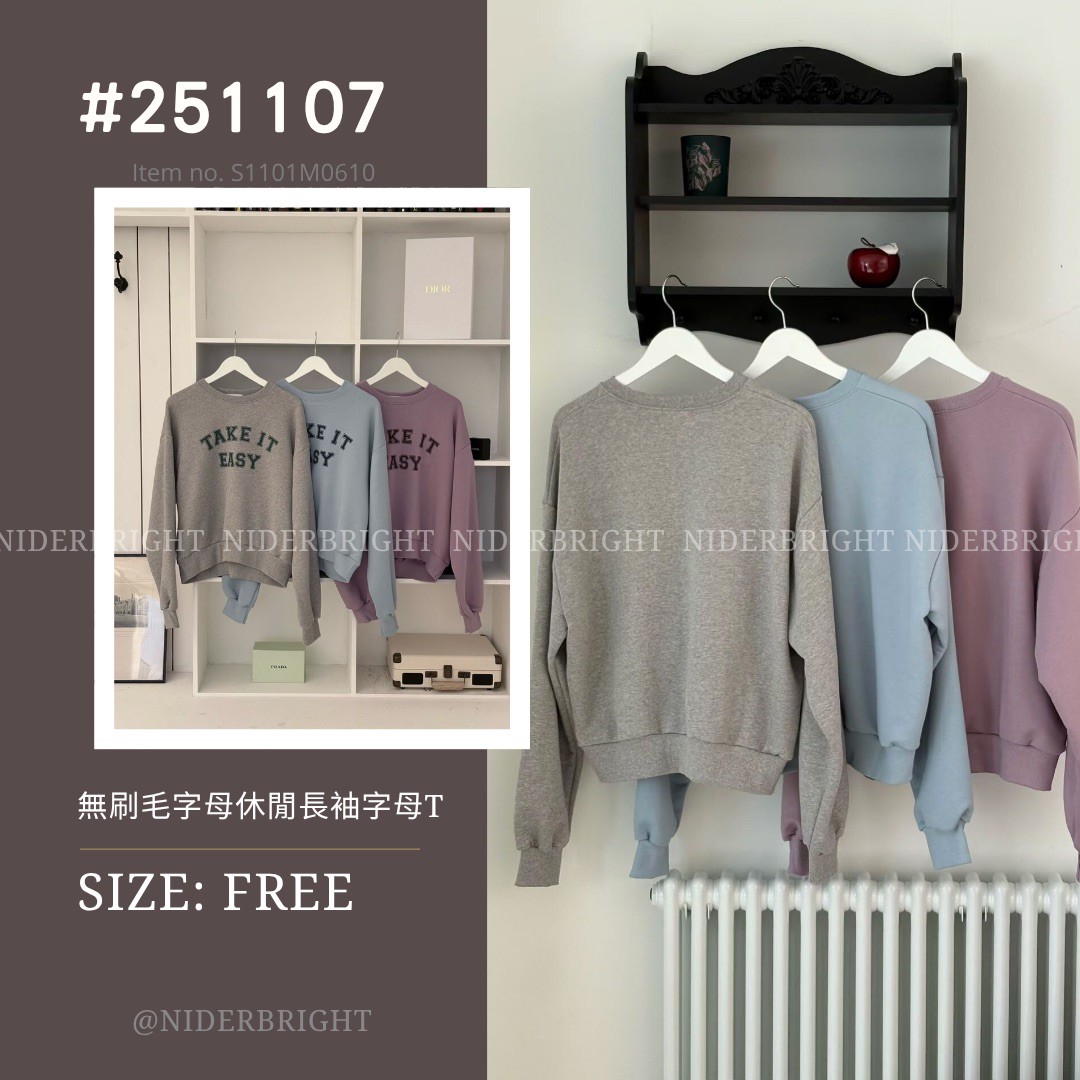 / 2511#07 無刷毛 休閒 長袖 字母T