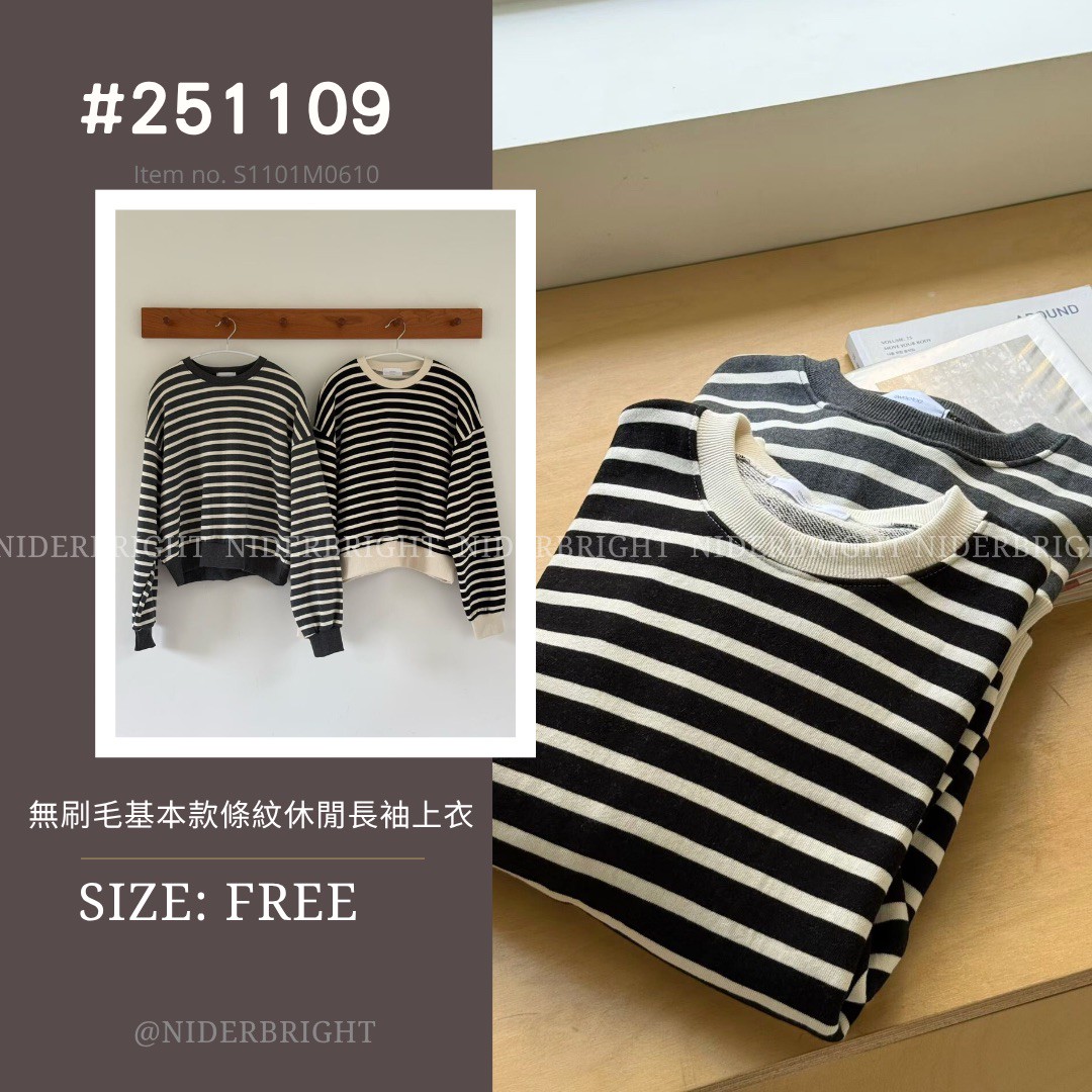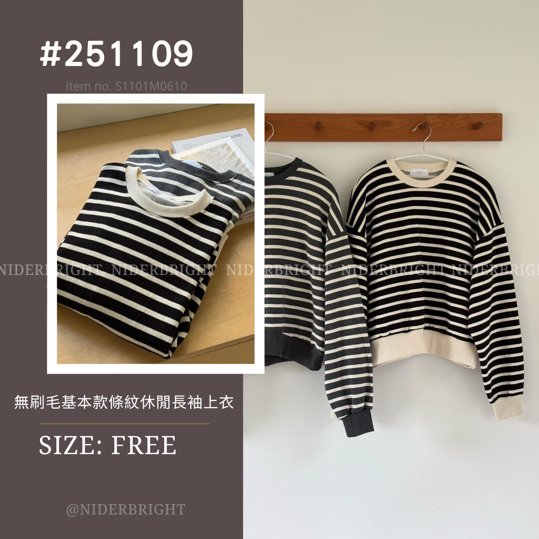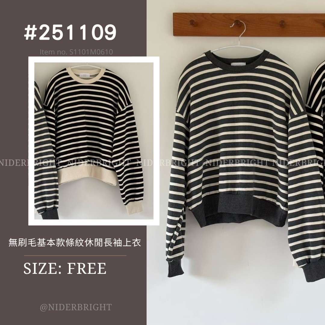 2511#09 無刷毛 基本款 條紋 休閒 長袖上衣 quantity