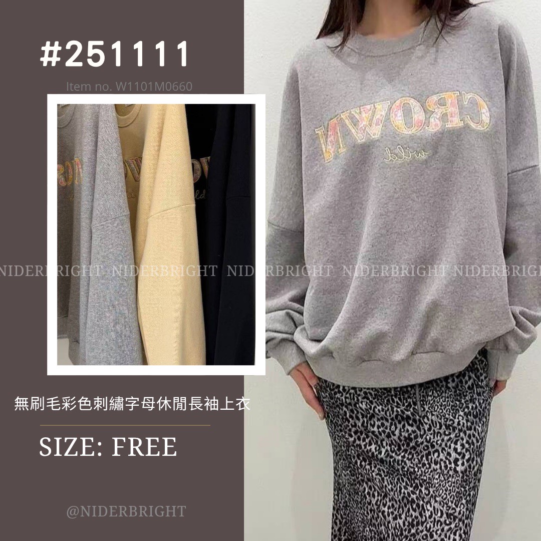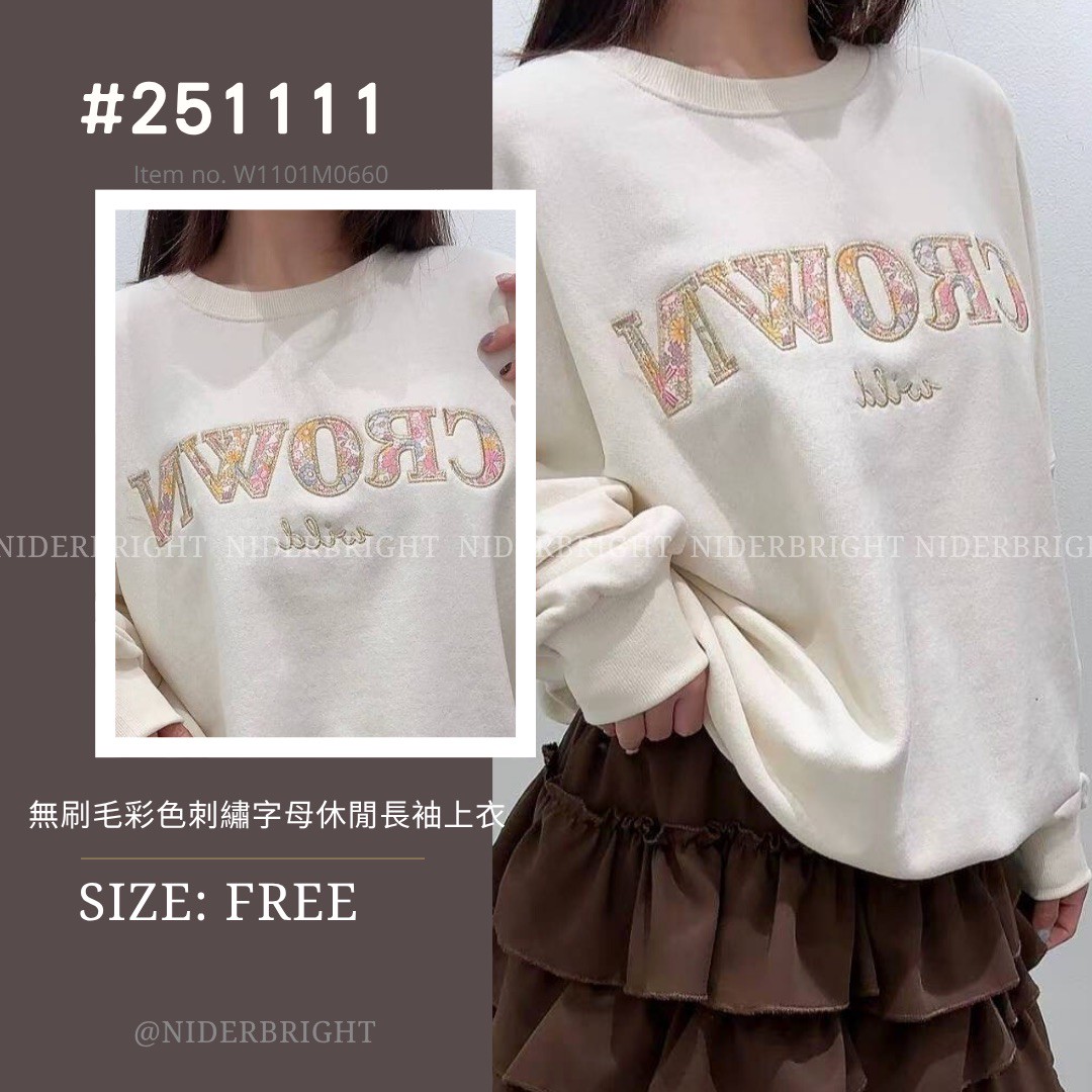 / 2511#11 無刷毛 彩色刺繡 字母 休閒 長袖上衣