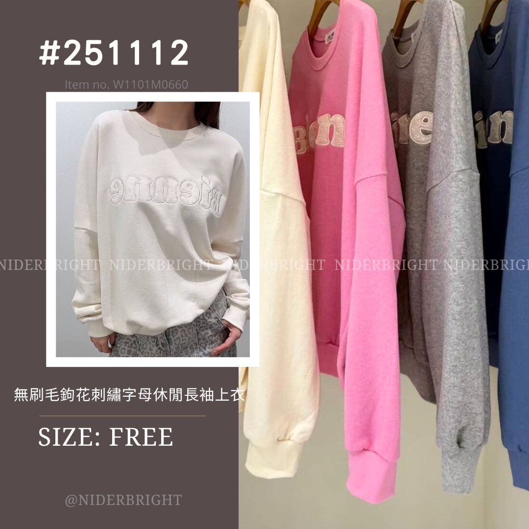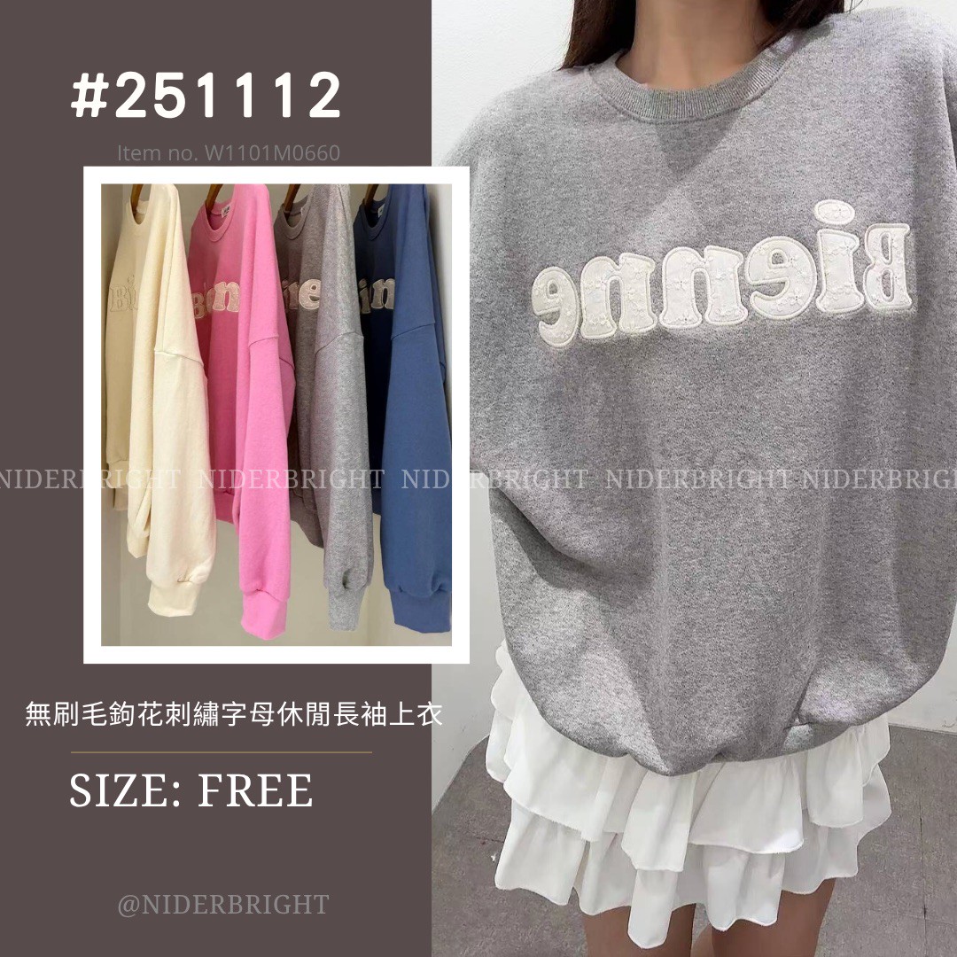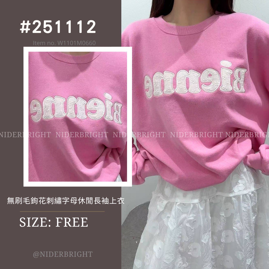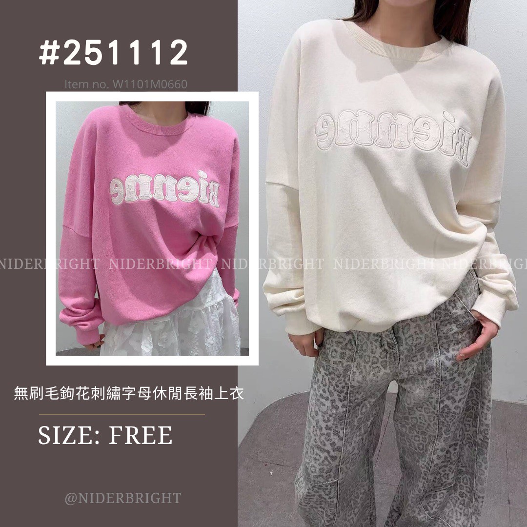 / 2511#12 無刷毛 鉤花 刺繡 字母 休閒 長袖上衣