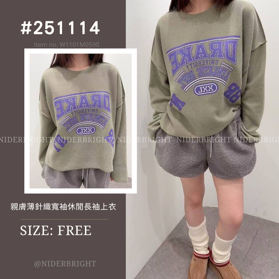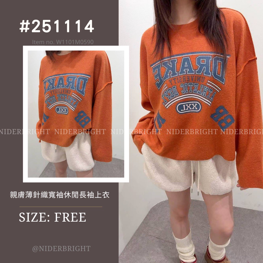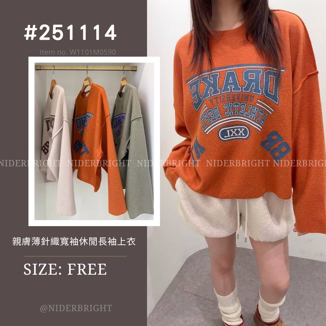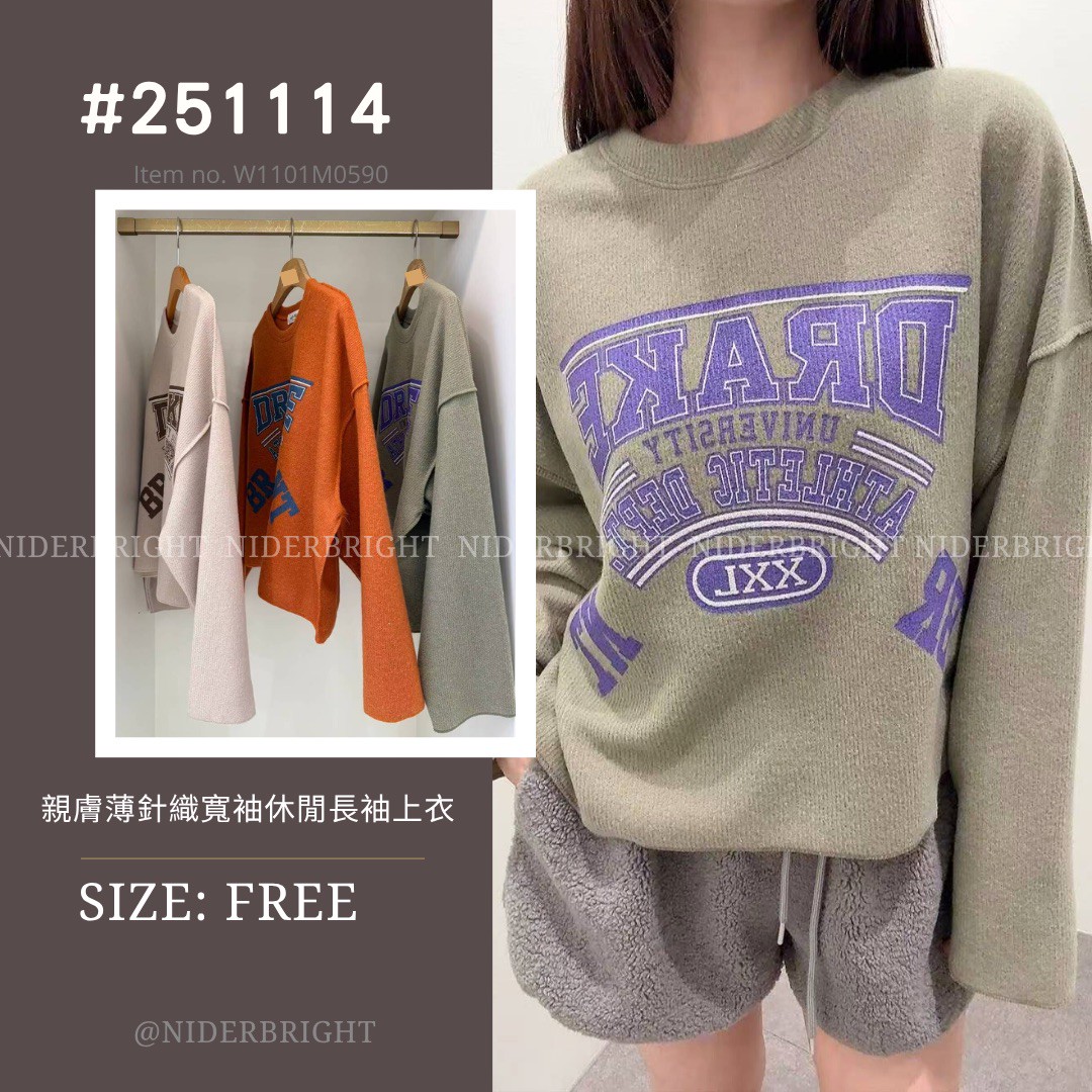 / 2511#14 親膚 薄針織 寬袖 休閒 長袖上衣