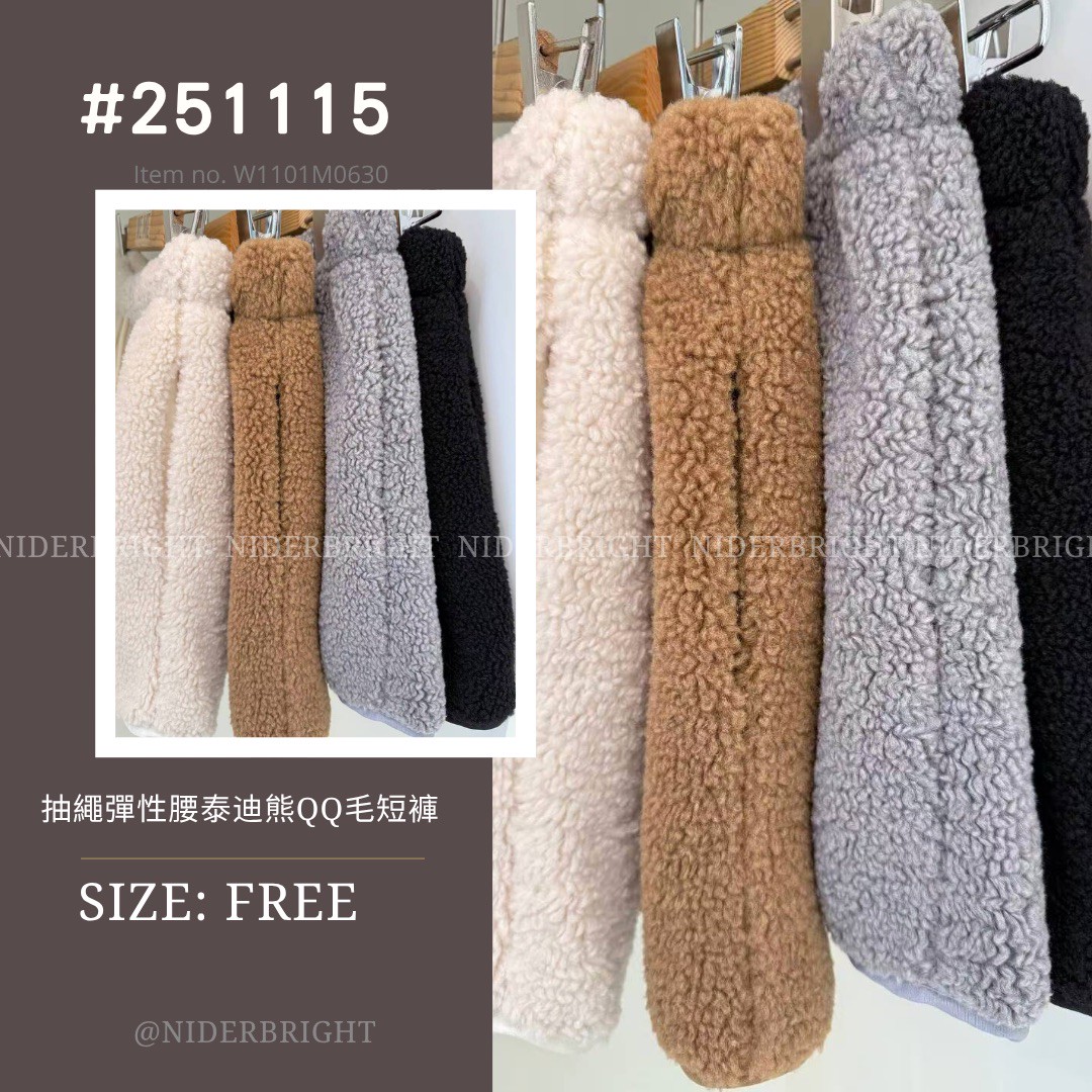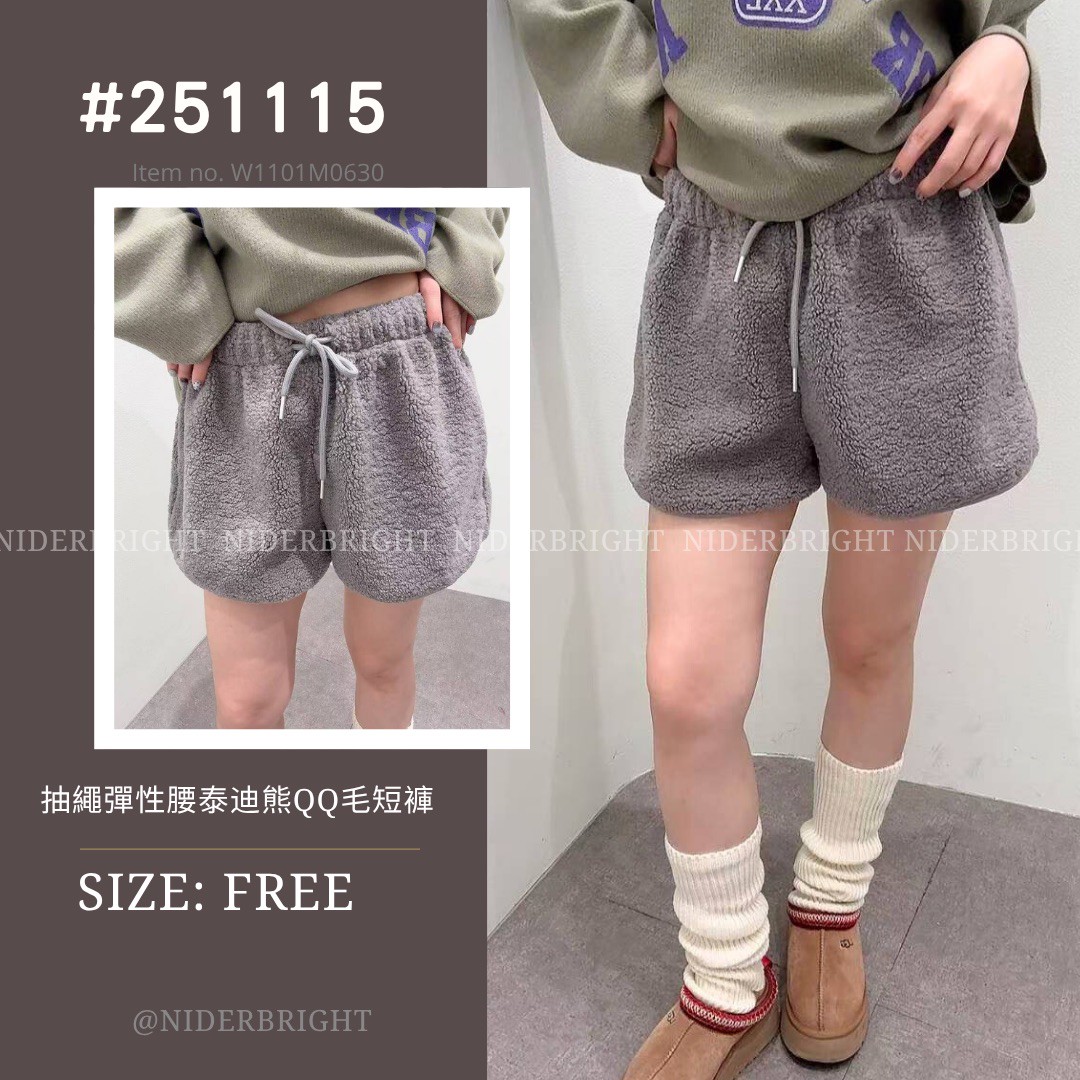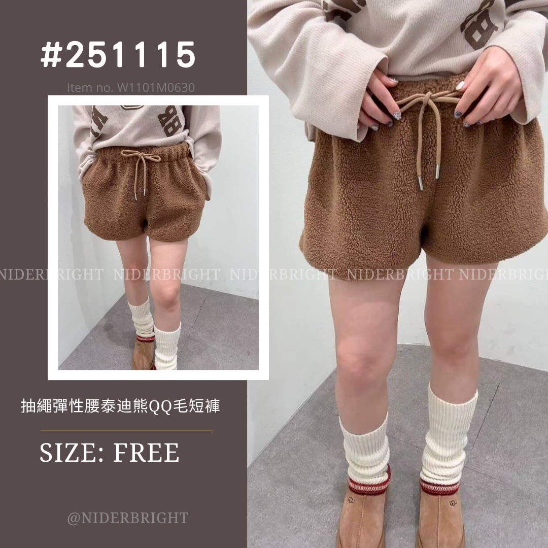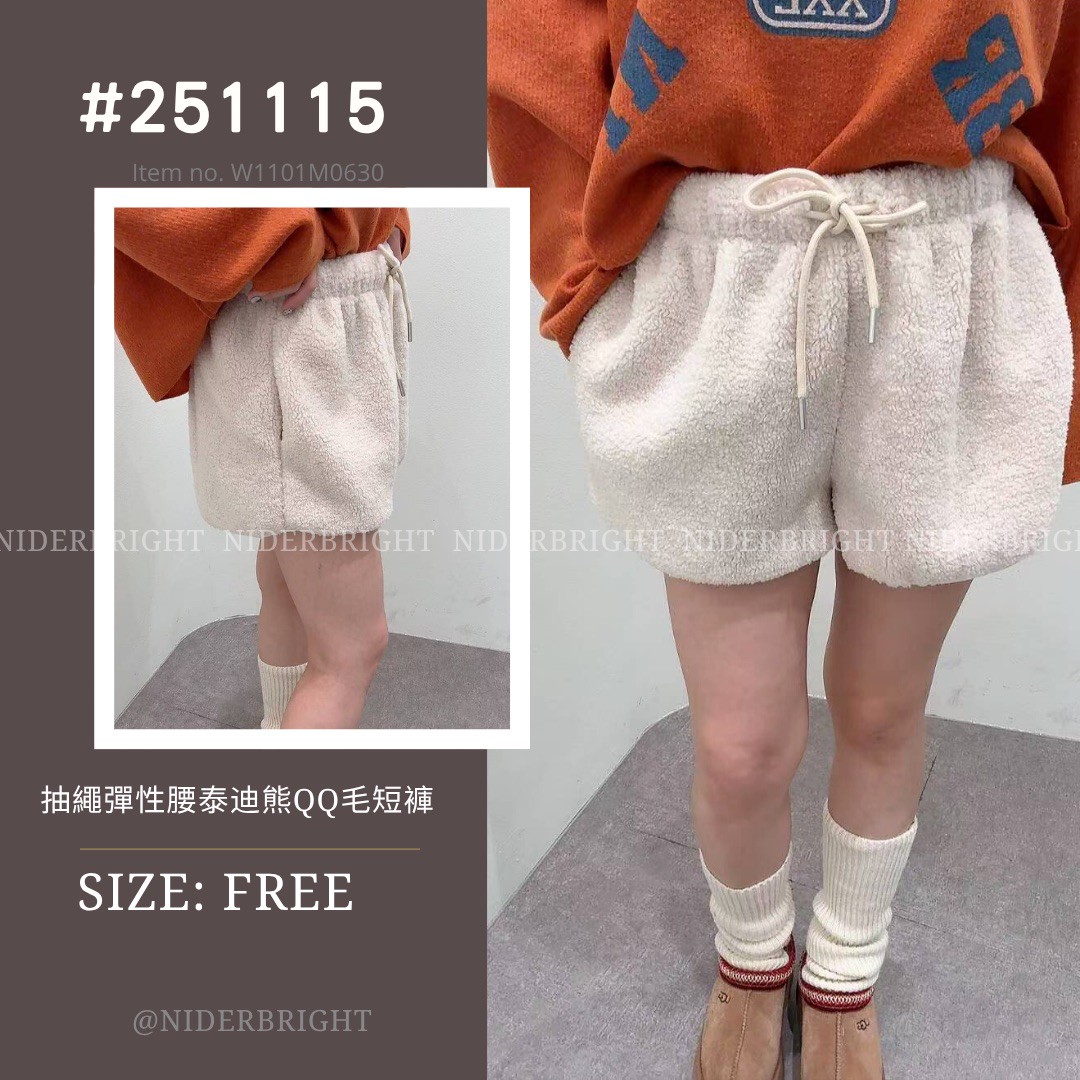 / 2511#15 抽繩 彈性 保暖 泰迪熊QQ毛 短褲