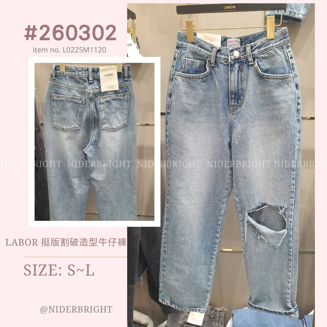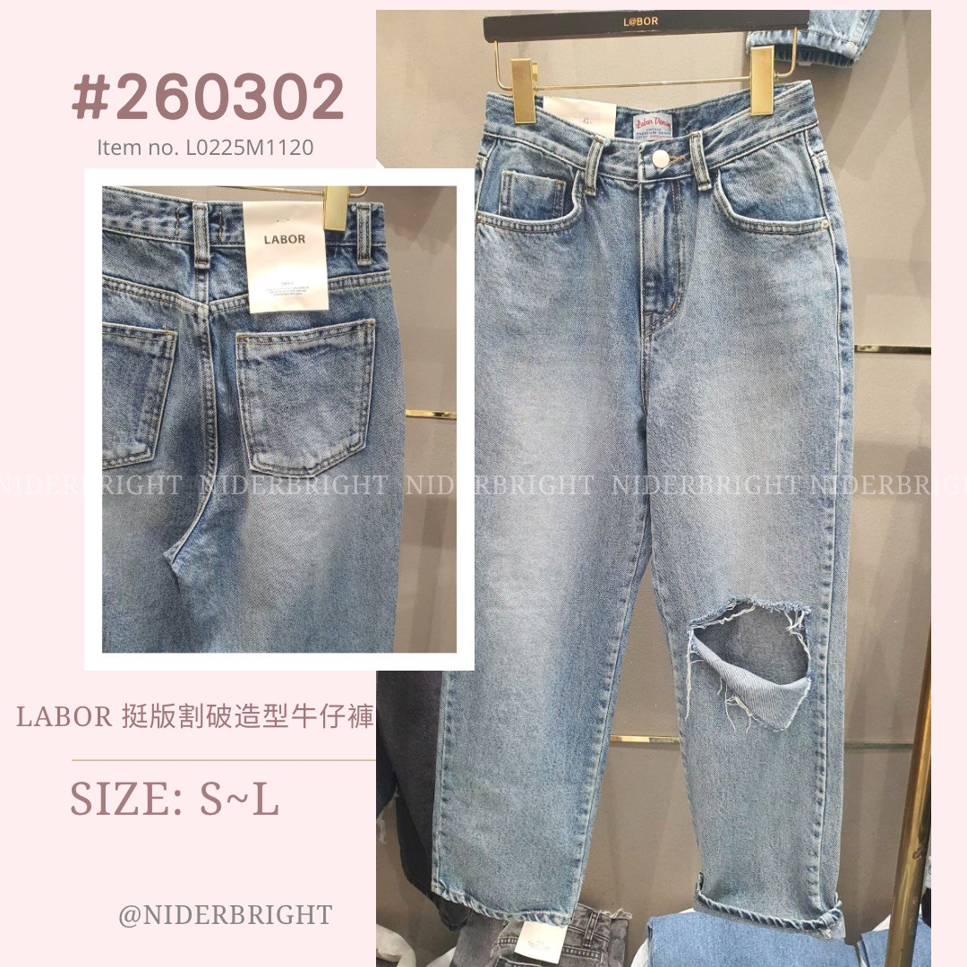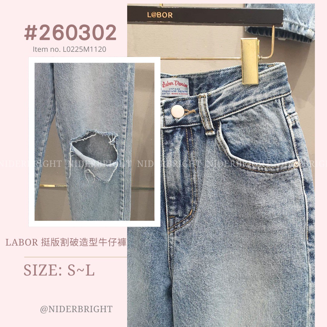 2603#02 Labor 挺版割破造型牛仔長褲 數量