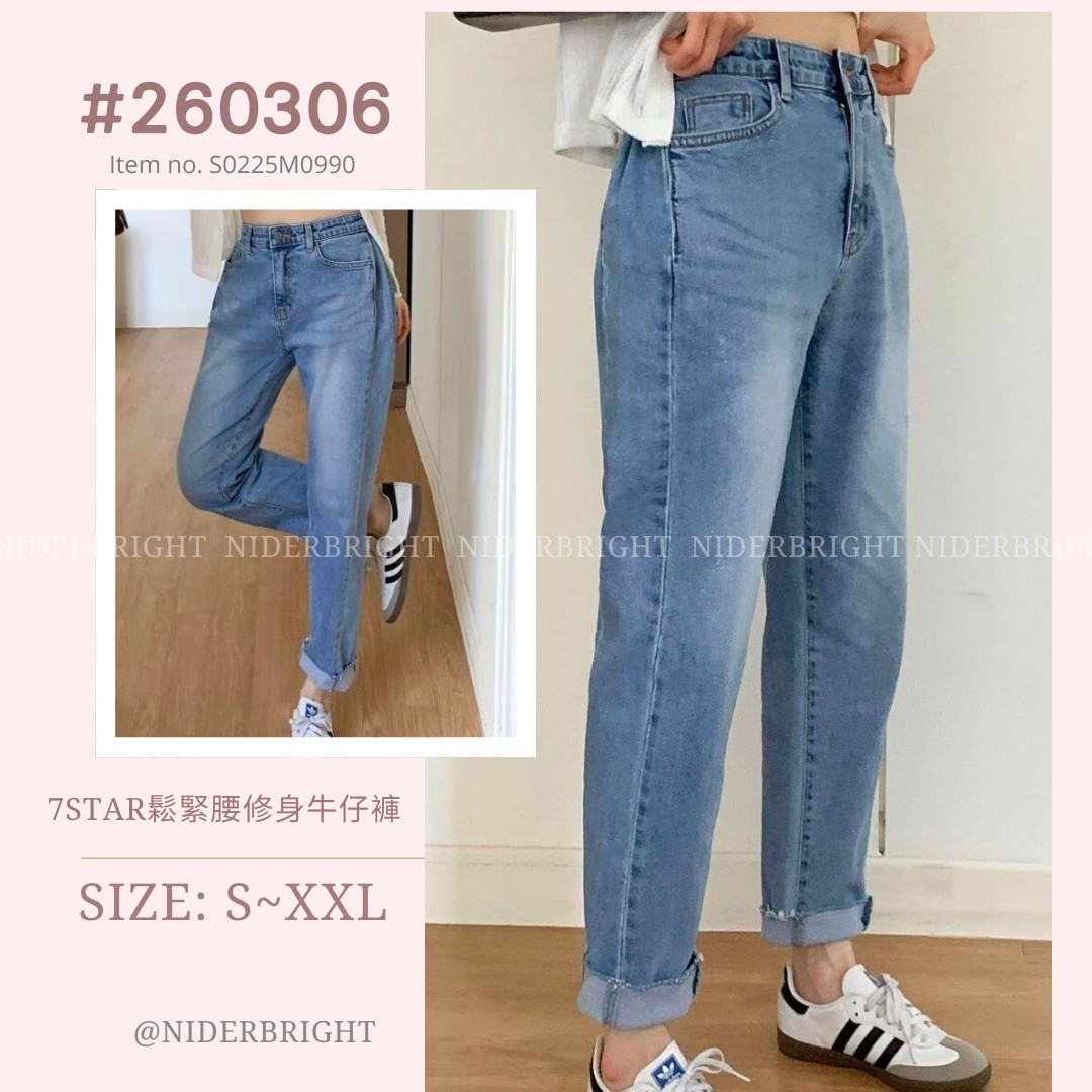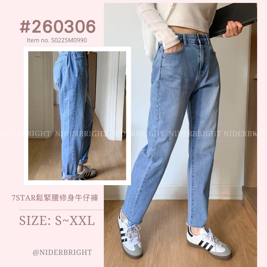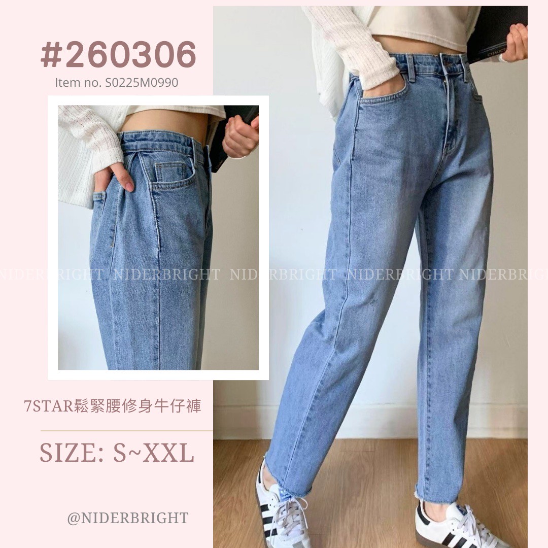 2603#06 7Star 鬆緊腰修身牛仔長褲 數量