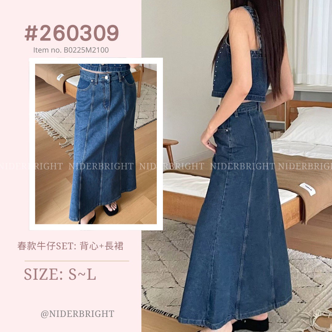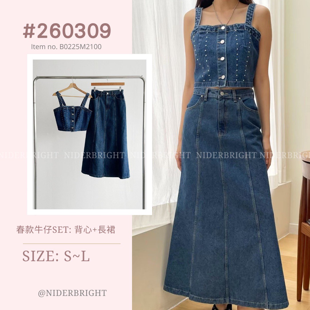 2603#09 春款牛仔SET: 背心+長裙 數量