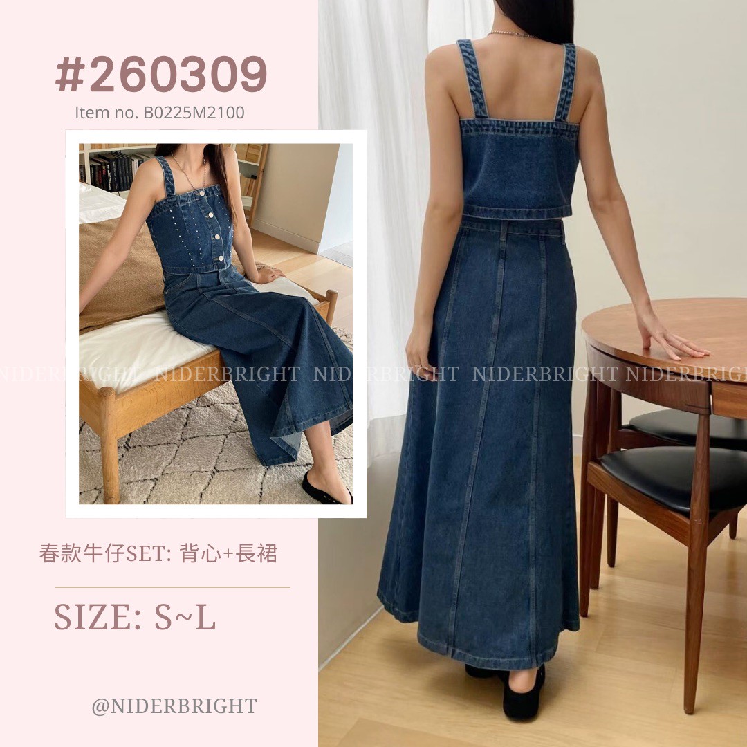 2603#09 春款牛仔SET: 背心+長裙