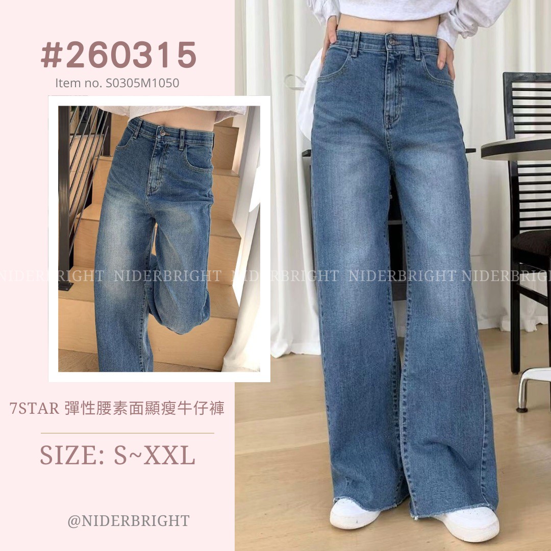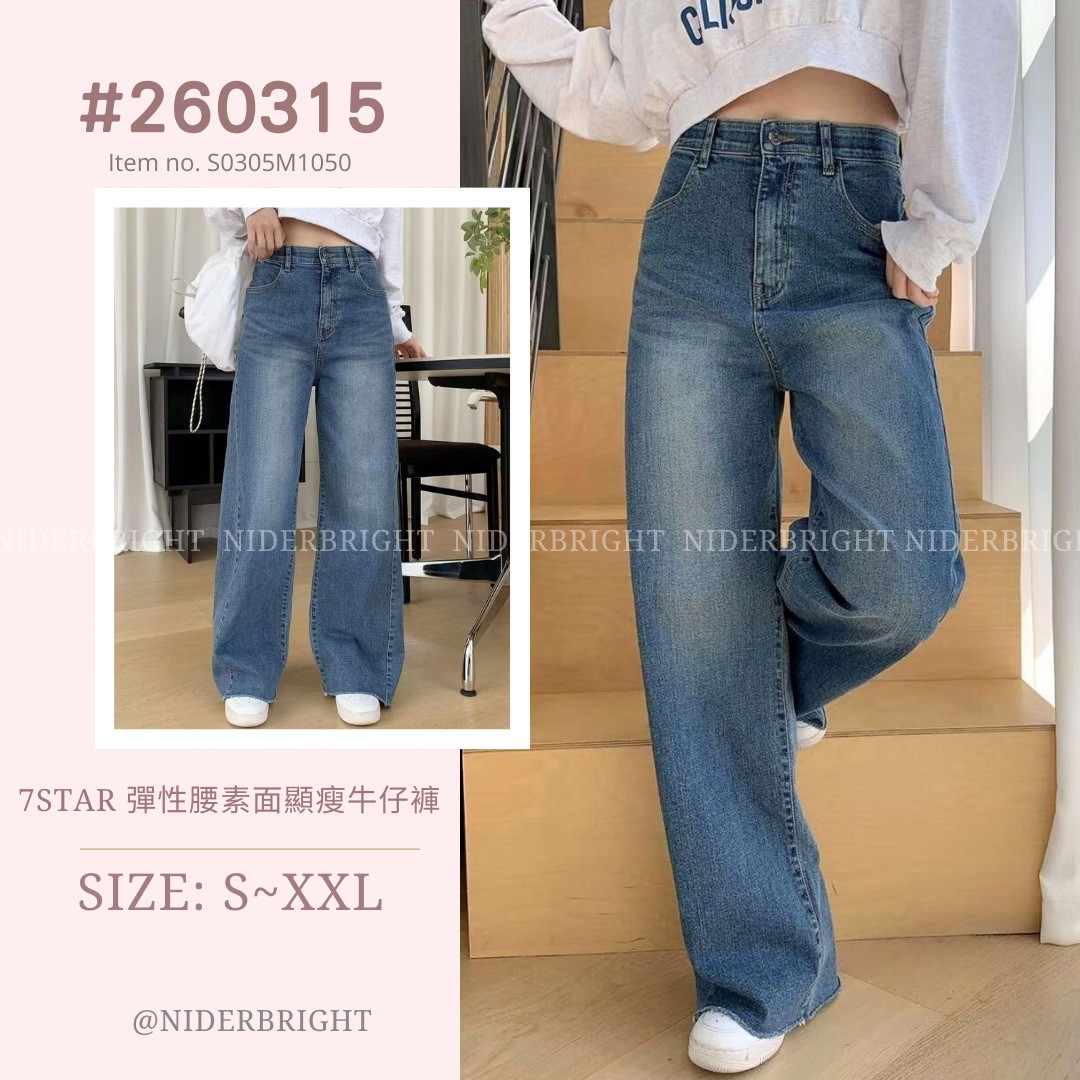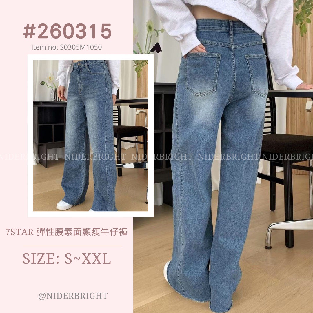 2603#15 7STAR 彈性腰素面顯瘦牛仔長褲 數量