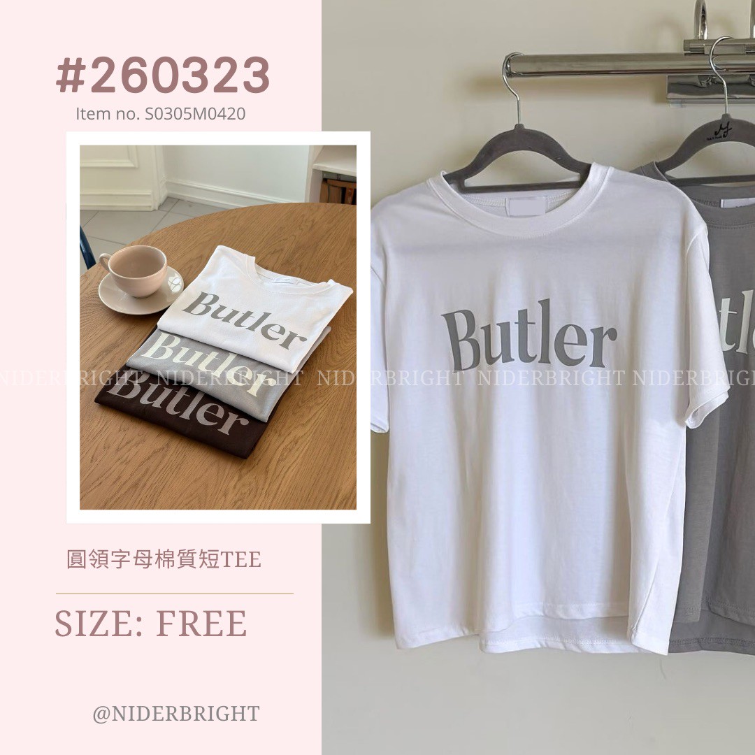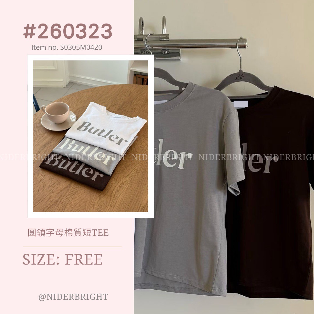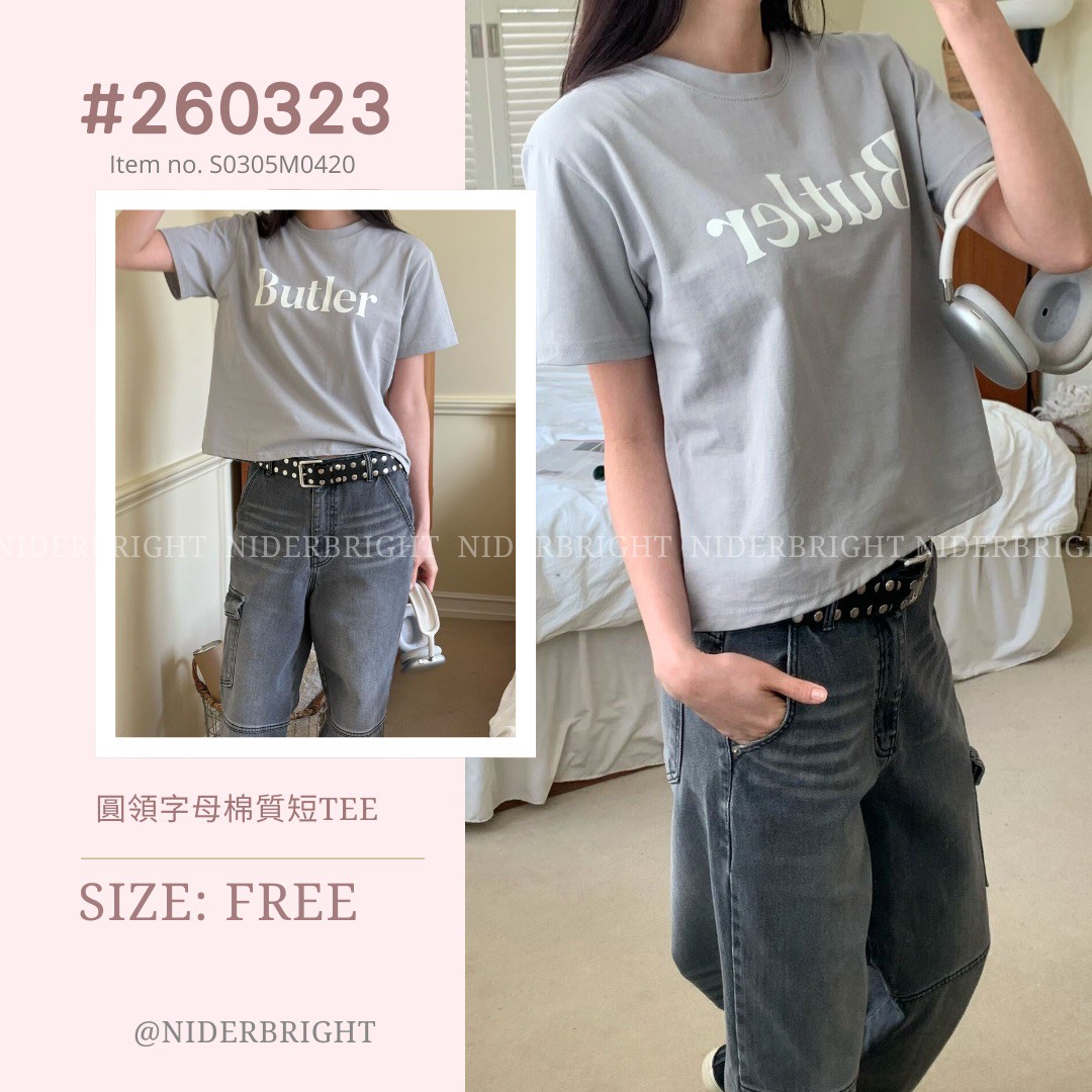 2603#23 圓領字母棉質短TEE