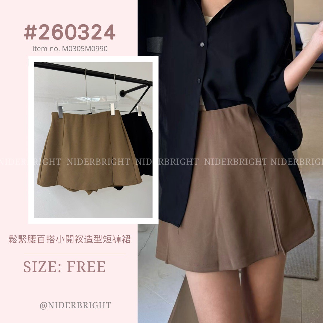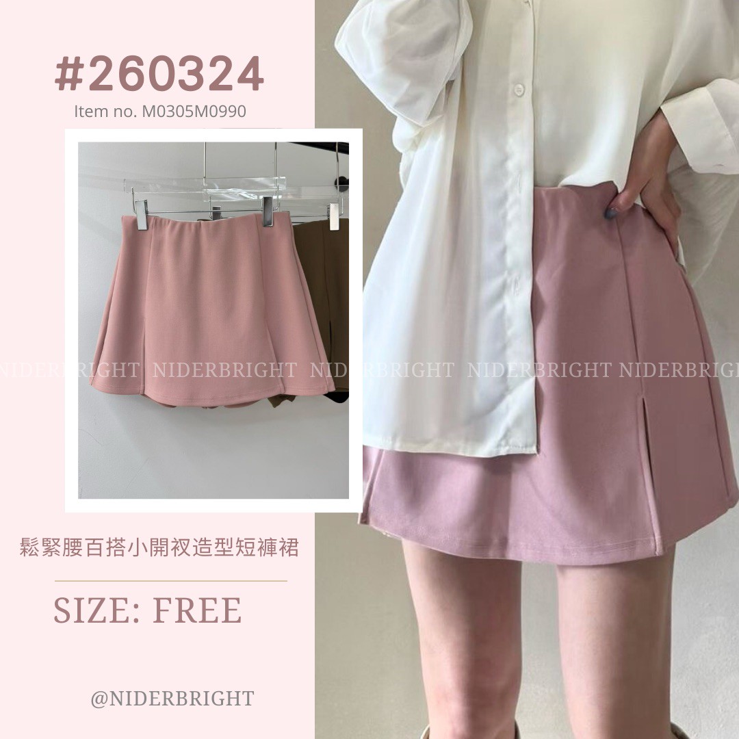 2603#24 鬆緊腰百搭小開衩造型褲裙