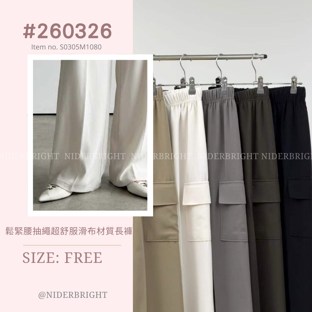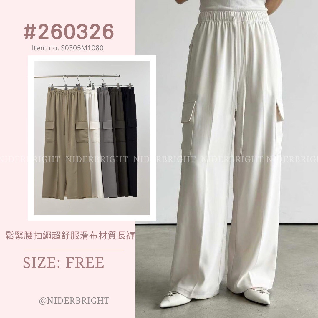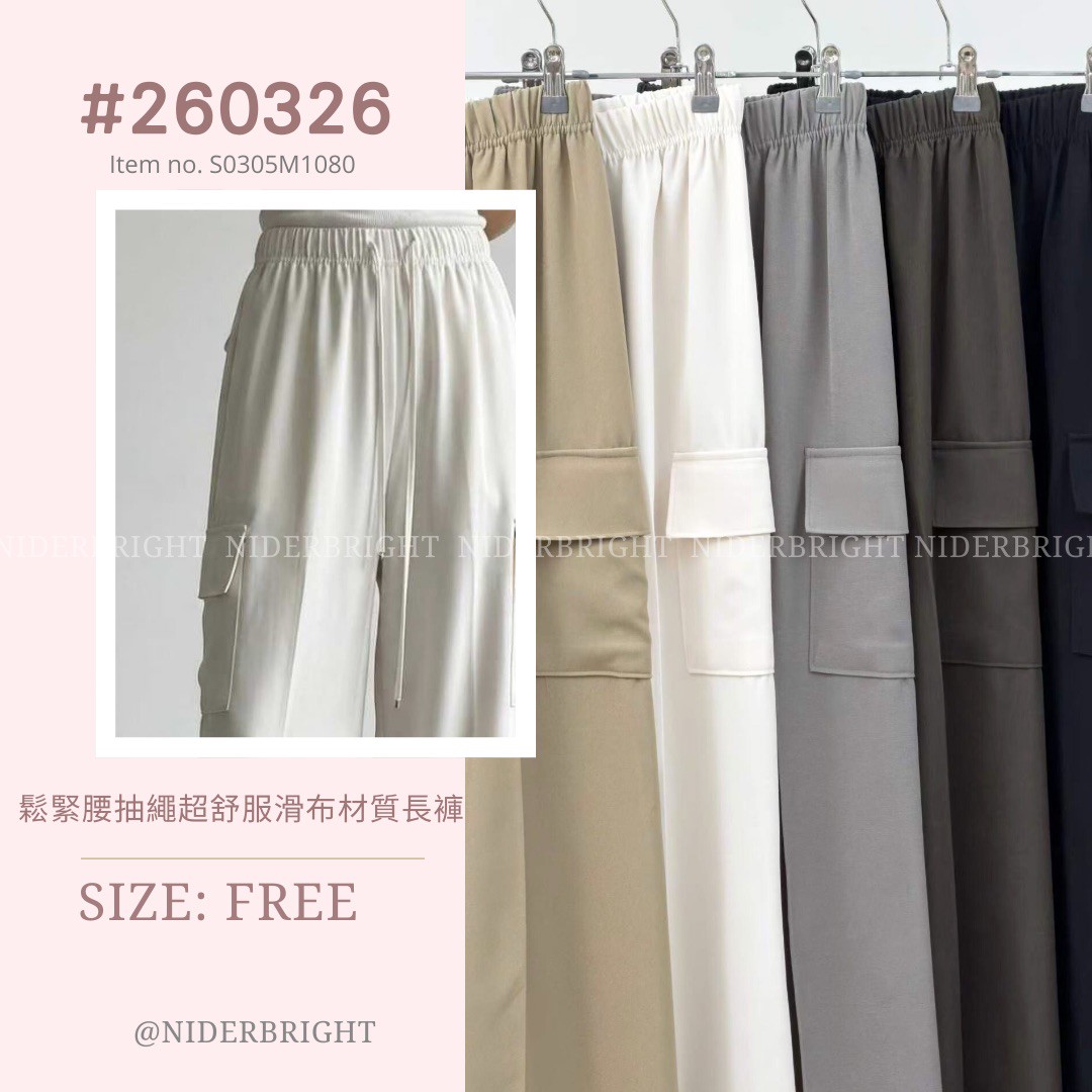 2603#26 鬆緊腰抽繩超舒服滑布材質長褲 數量